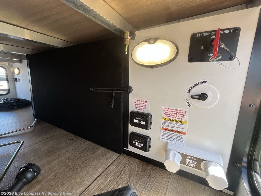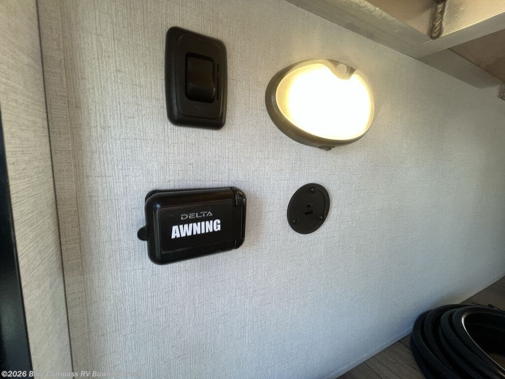 Each Delta Solo Model Each is designed to provide both comfort and convenience in a compact footprint. Inside, you'll find residential-style touches like can-style LED ceiling lights, cabinet doors with magnetic catches, and commercial-grade vinyl flooring built to last. On the exterior, practical travel features include exterior switches for the slide-out and awning, sturdy Step Above fold-out entry steps, and color-coded, numbered wiring for simplified maintenance and troubleshooting.