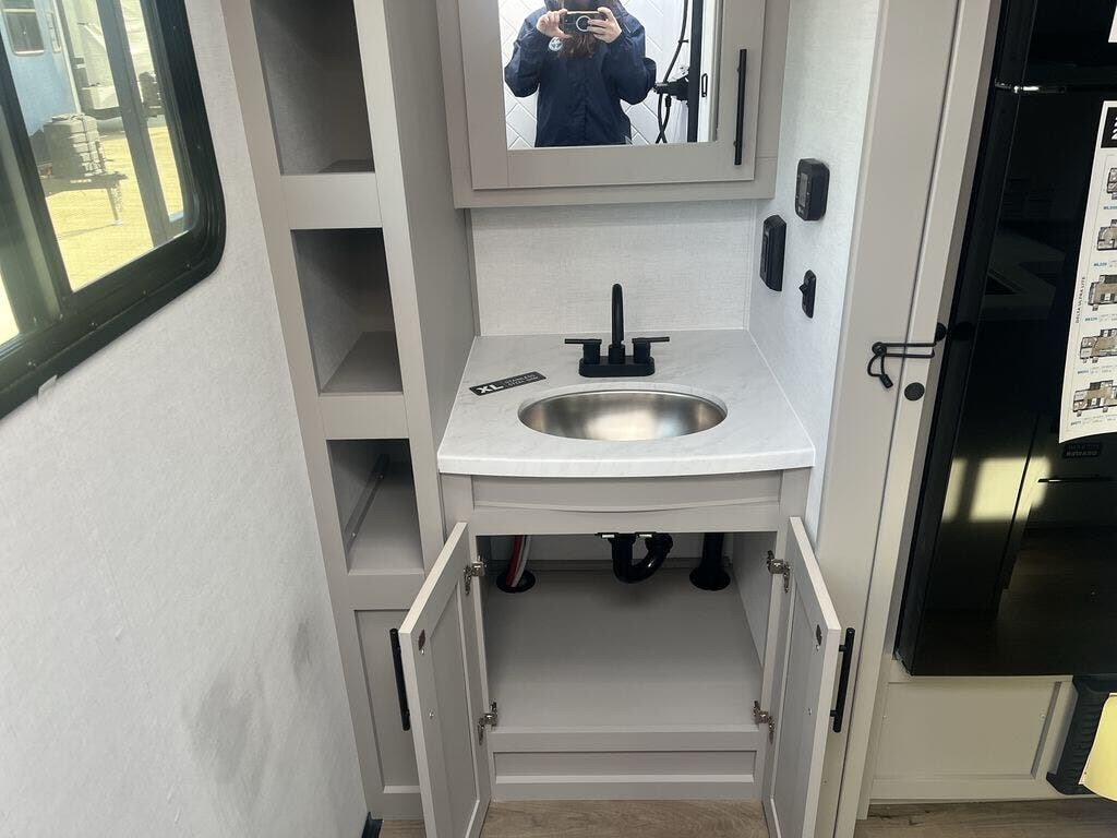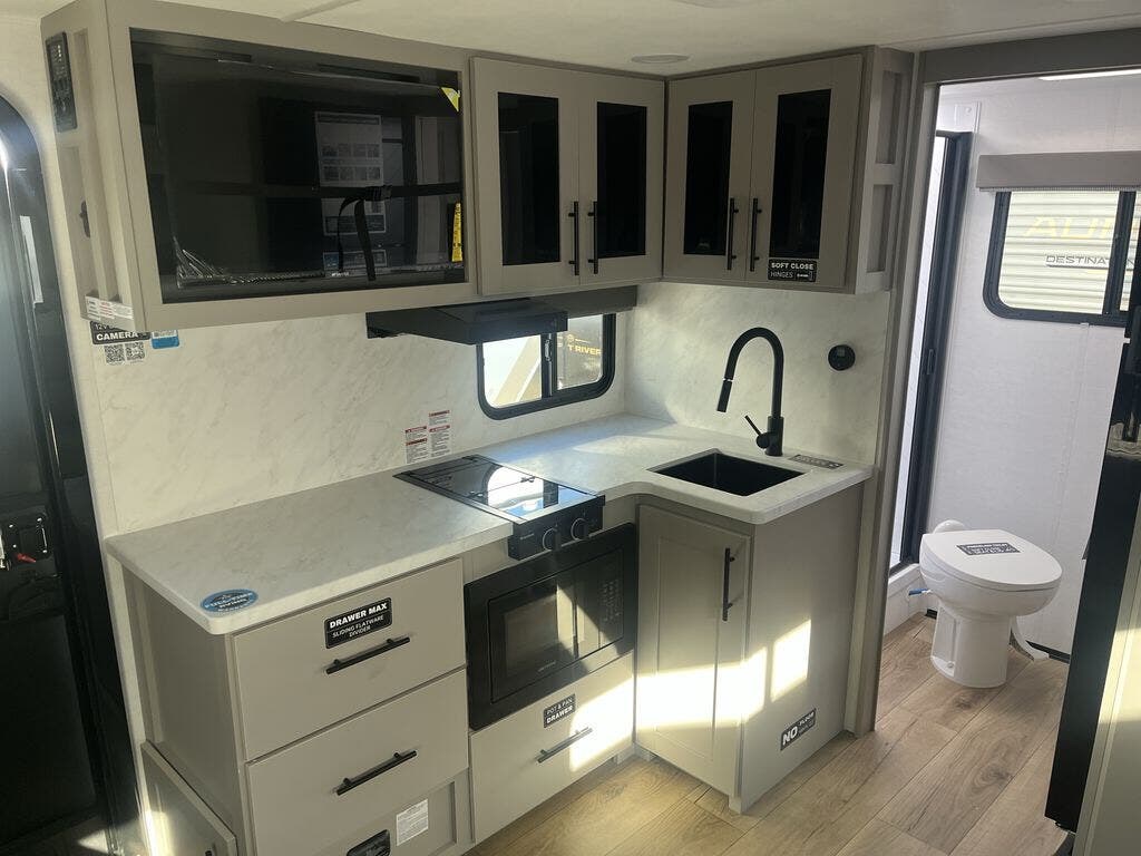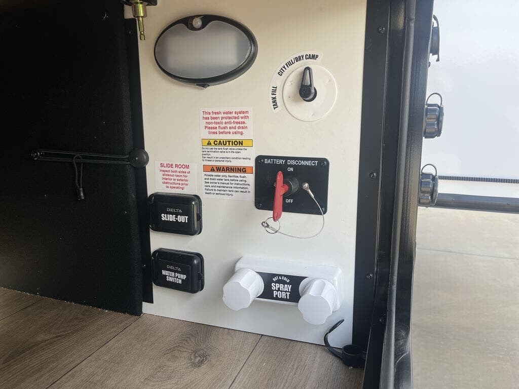 Each Delta Solo model is designed to deliver both comfort and convenience in a compact footprint. Inside, you'll find residential-style touches like can-style LED ceiling lights, durable cabinet doors with magnetic catches, and commercial-grade vinyl flooring built to last. On the exterior, practical travel features include easy-access switches for the slide-out and awning, sturdy Step Above fold-out entry steps, and color-coded, numbered wiring for simplified maintenance and troubleshooting.