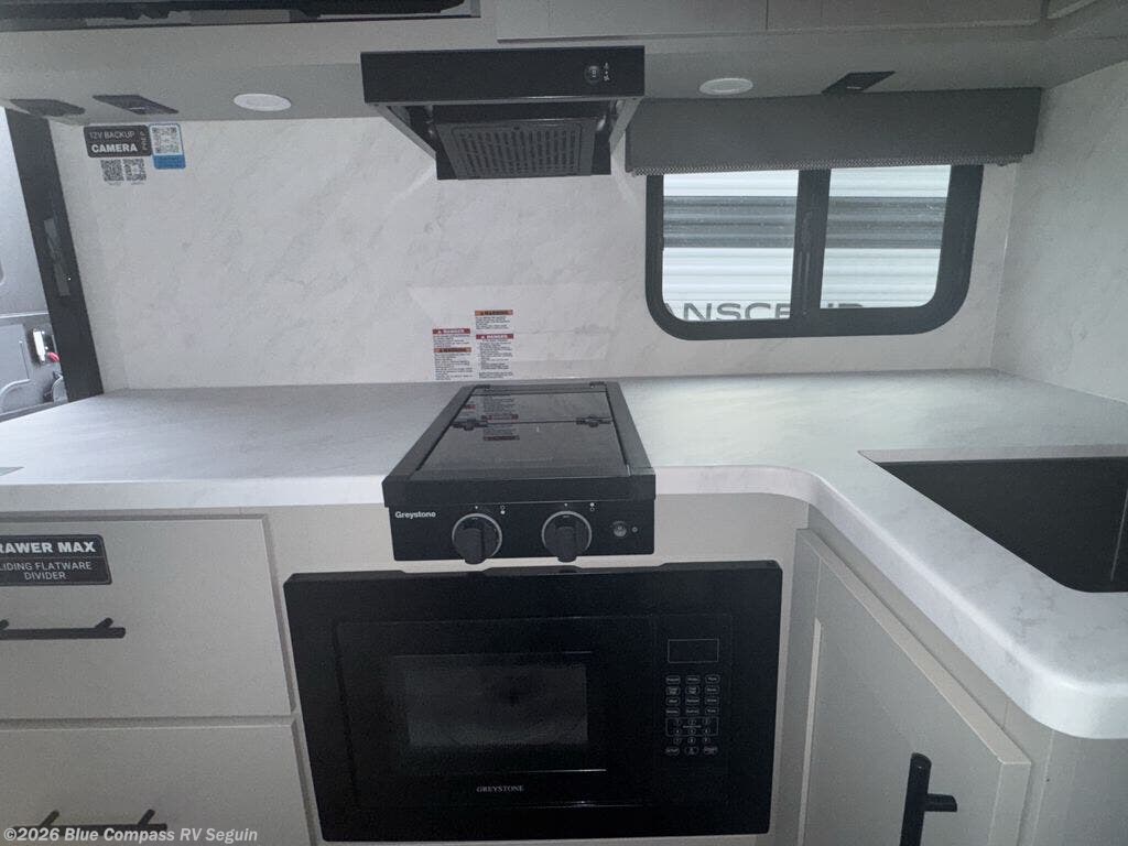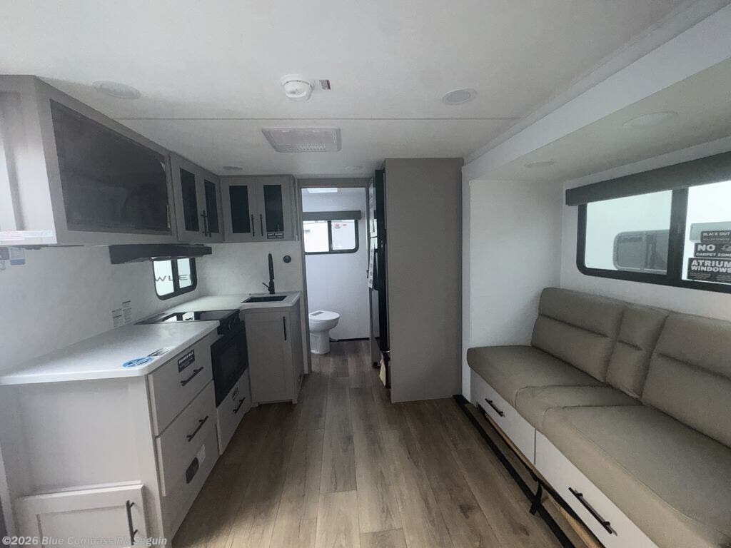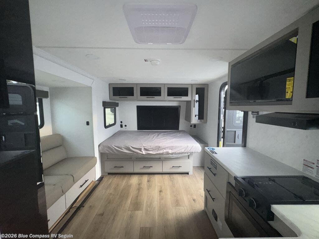 Enter this thoughtfully designed trailer through the 28" entry and step into a space that blends comfort and functionality. At the front, a 60" x 80" queen bed offers restful sleep, complete with a wardrobe at the foot and overhead storage. The center features an L-shaped kitchen equipped with a sink, 2-burner cooktop, overhead cabinets, and a 32-inch TV, while directly across, a 10-cu. ft. refrigerator and a slide out with a 60" jackknife sofa maximize space and convenience. At the rear, enjoy a full bathroom with a 30" x 36" shower, toilet, sink, linen shelves, and additional overhead storage making this compact trailer feel like home wherever you go.