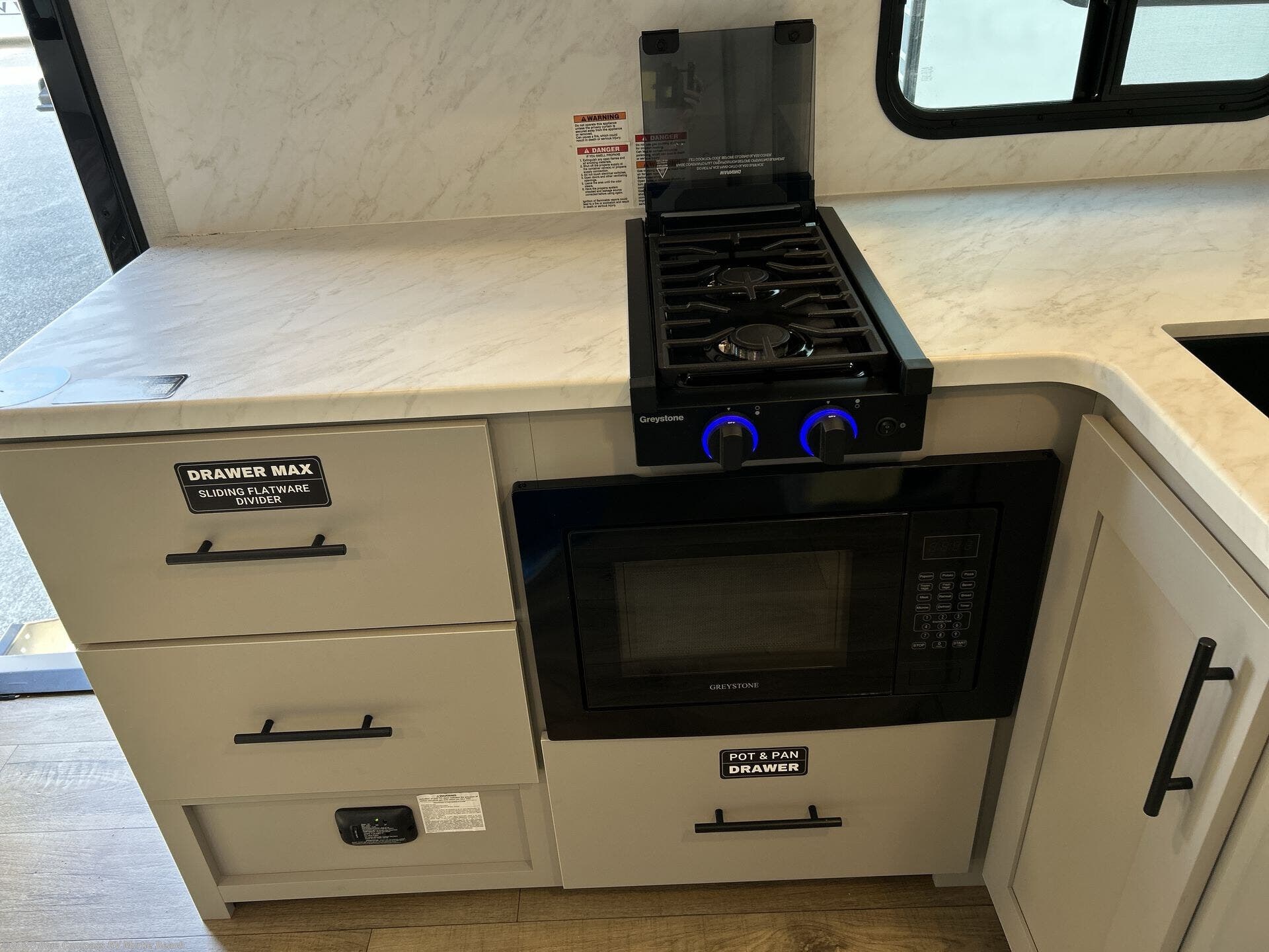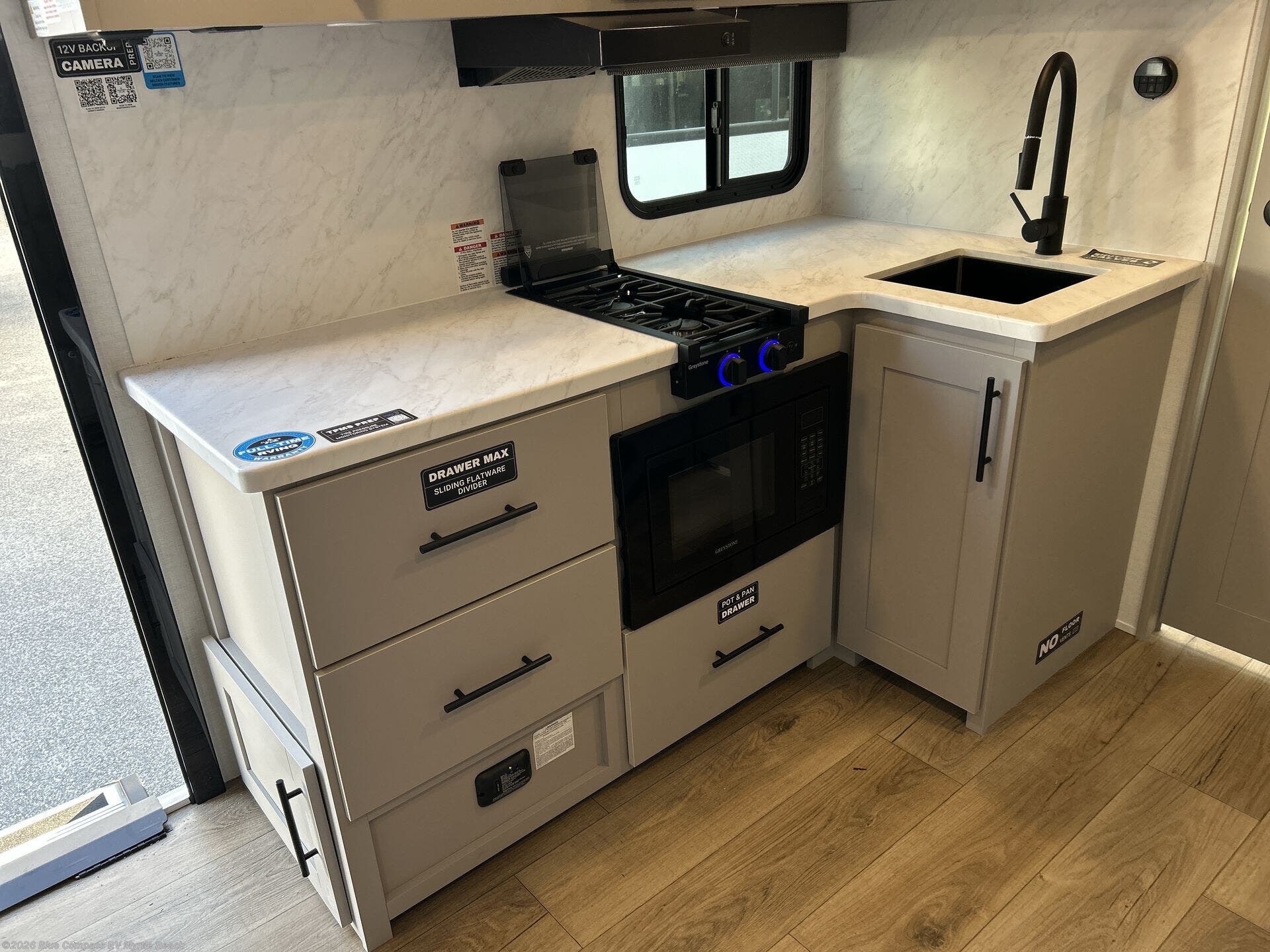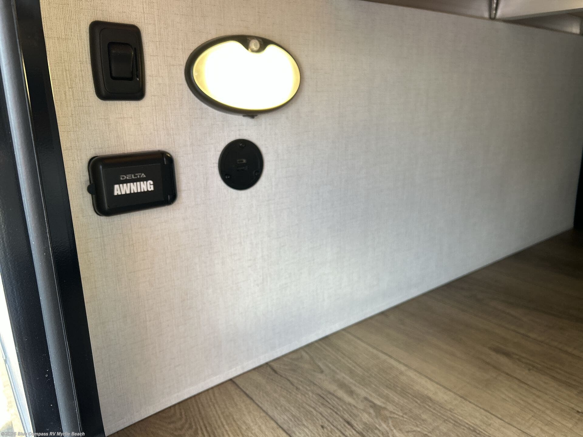 Each Delta Solo model is designed to deliver both comfort and convenience in a compact footprint. Inside, you'll find residential-style touches like can-style LED ceiling lights, durable cabinet doors with magnetic catches, and commercial-grade vinyl flooring built to last. On the exterior, practical travel features include easy-access switches for the slide-out and awning, sturdy Step Above fold-out entry steps, and color-coded, numbered wiring for simplified maintenance and troubleshooting.