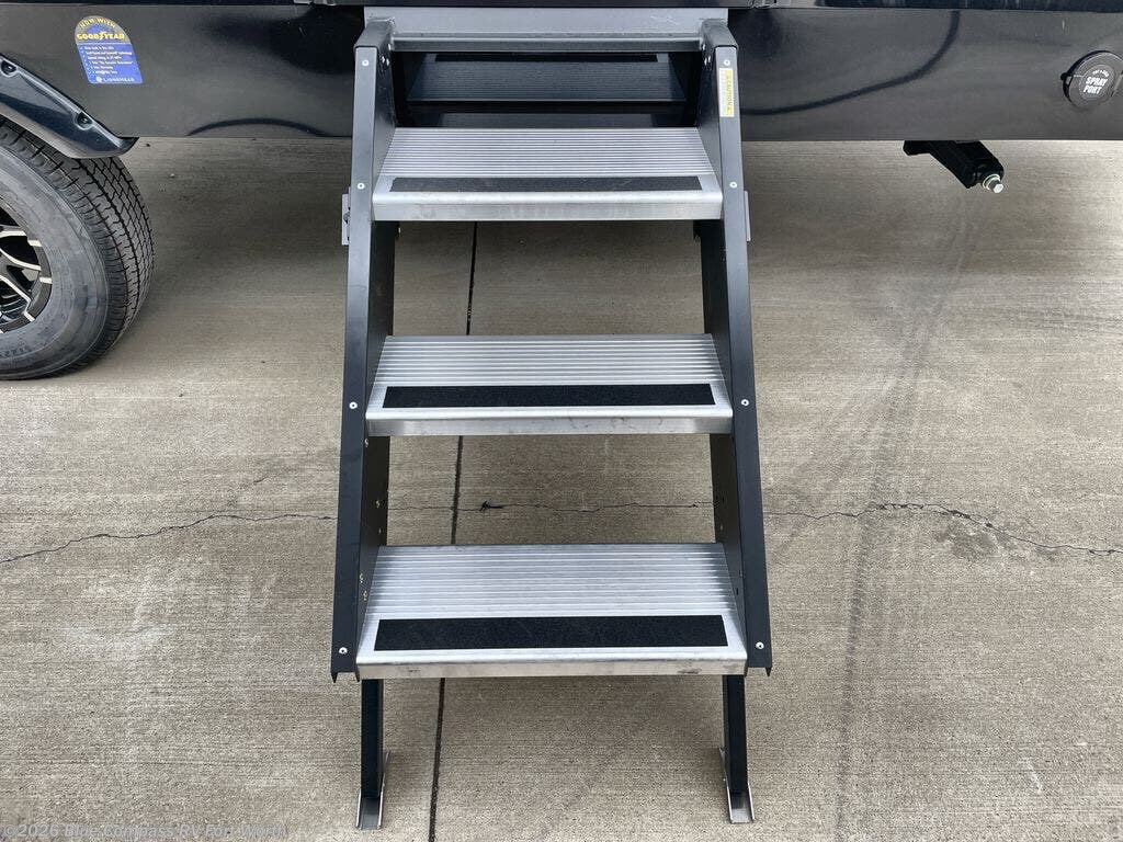Each Delta Solo Model Each is designed to provide both comfort and convenience in a compact footprint. Inside, you'll find residential-style touches like can-style LED ceiling lights, cabinet doors with magnetic catches, and commercial-grade vinyl flooring built to last. On the exterior, practical travel features include exterior switches for the slide-out and awning, sturdy Step Above fold-out entry steps, and color-coded, numbered wiring for simplified maintenance and troubleshooting.