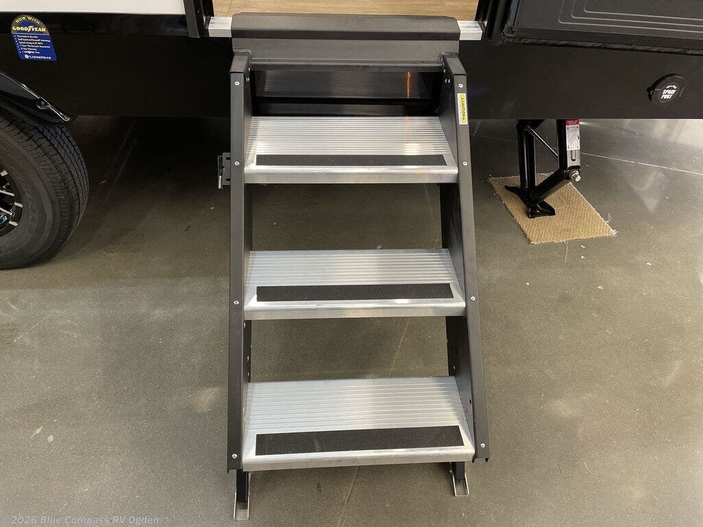 Each Delta Solo Model Each is designed to provide both comfort and convenience in a compact footprint. Inside, you'll find residential-style touches like can-style LED ceiling lights, cabinet doors with magnetic catches, and commercial-grade vinyl flooring built to last. On the exterior, practical travel features include exterior switches for the slide-out and awning, sturdy Step Above fold-out entry steps, and color-coded, numbered wiring for simplified maintenance and troubleshooting.