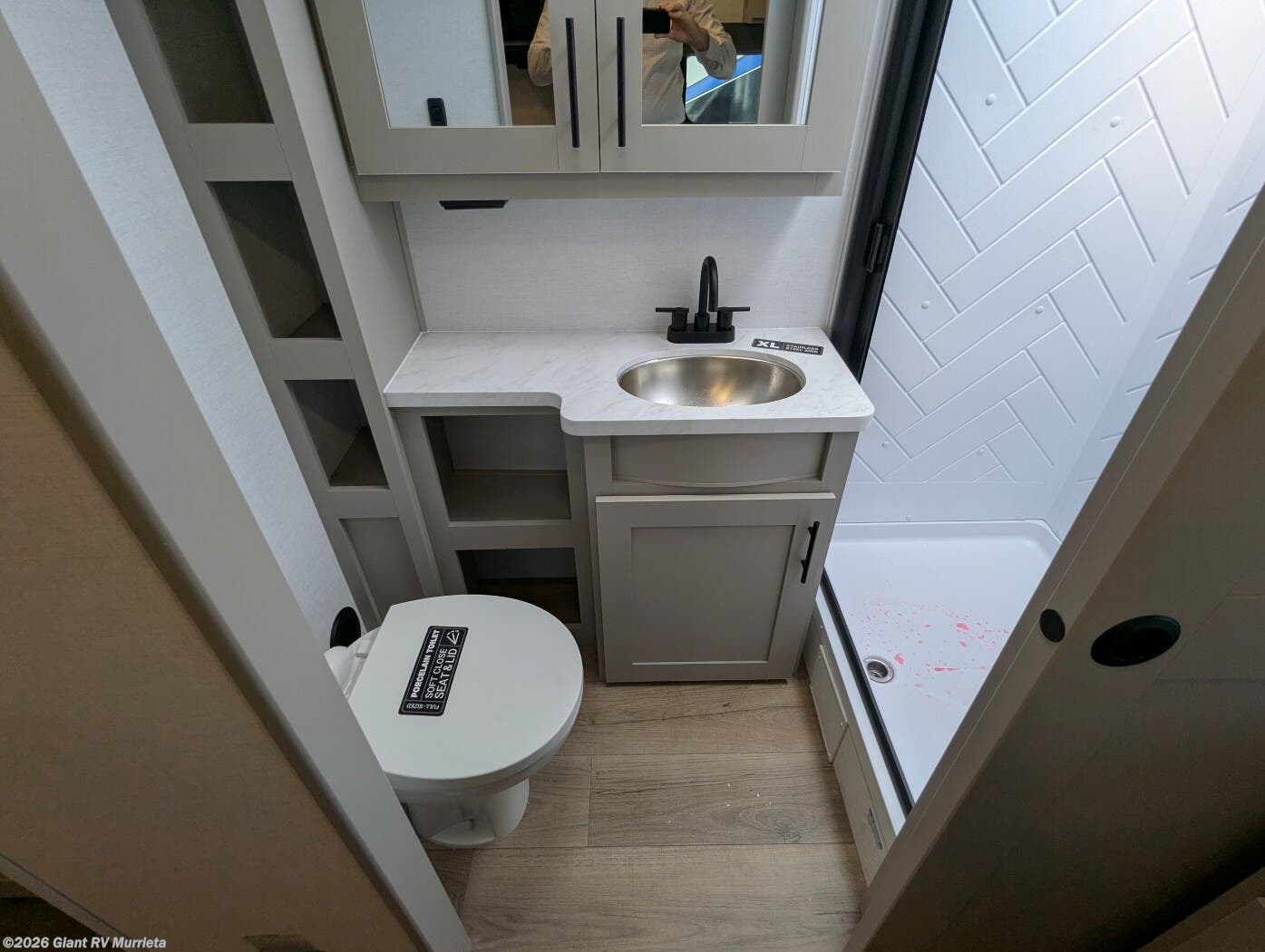 - Modern Amenities and Durability: Features air conditioning, 10 cu ft 12V refrigerator, three-burner cooktop, convection microwave, full bath with 30" x 36" shower, kitchen toe kick LED lighting, laminated fiberglass walls, one-piece rubber roof, and Goodyear Endurance tires for reliable all-season adventures.