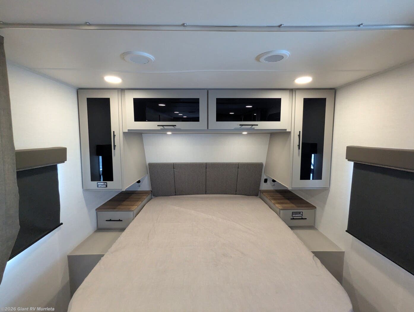 - Semi-Private Bedroom Retreat: Sleeps up to 4 with a 60" x 80" queen bed, wardrobe nightstands, overhead storage, and privacy curtain for a cozy, organized sleeping space.