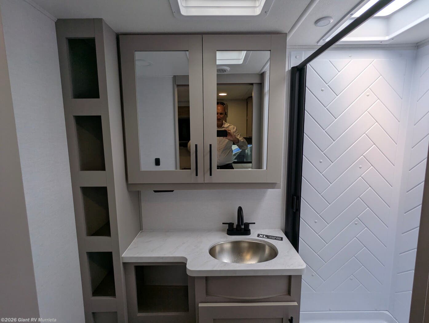 - Expansive Living Features: Includes a large slideout with theater seating and versatile dinette, plus pull-out pantry trays and atrium windows for an open, light-filled interior.