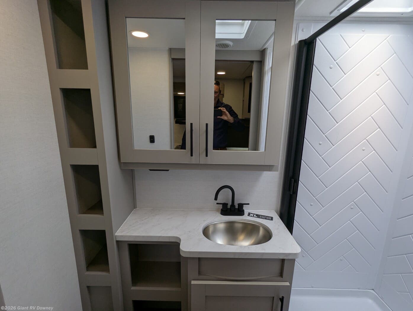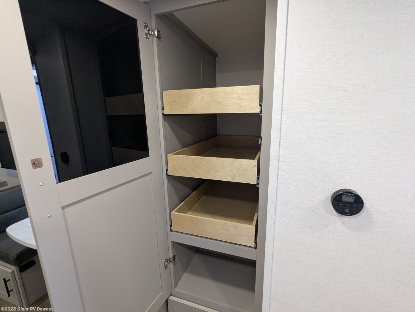 - Expansive Living Features: Includes a large slideout with theater seating and versatile dinette, plus pull-out pantry trays and atrium windows for an open, light-filled interior.