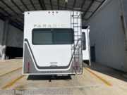 Search for the best views, the nicest RV park, or a place you haven't seen for years with this Paradigm in tow! There is a king bed slide in the master bedroom, a Smart TV, and a dresser with flip-up hidden storage for your belongings. The full bathroom offers a large residential shower, a porcelain toilet with a soft close seat, and storage for your linens, while the kitchen gives you two pantries, an island with a large undermount single basin sink and dishwasher prep if you want the option for easy clean up. You will also have a residential microwave and range, plus a 3.73 cu. ft. oven to make meals. When you're ready to relax for the evening, head to the rear living area to enjoy the dual recliner love seat across from the 50" Smart TV and fireplace!