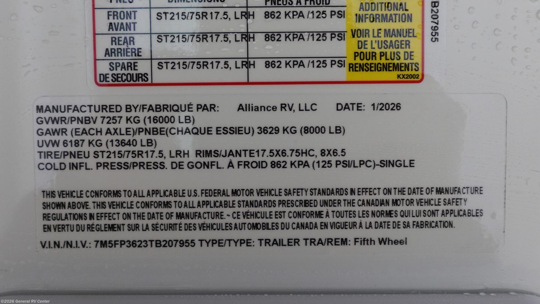 - VIN7M5FP3623TB207955