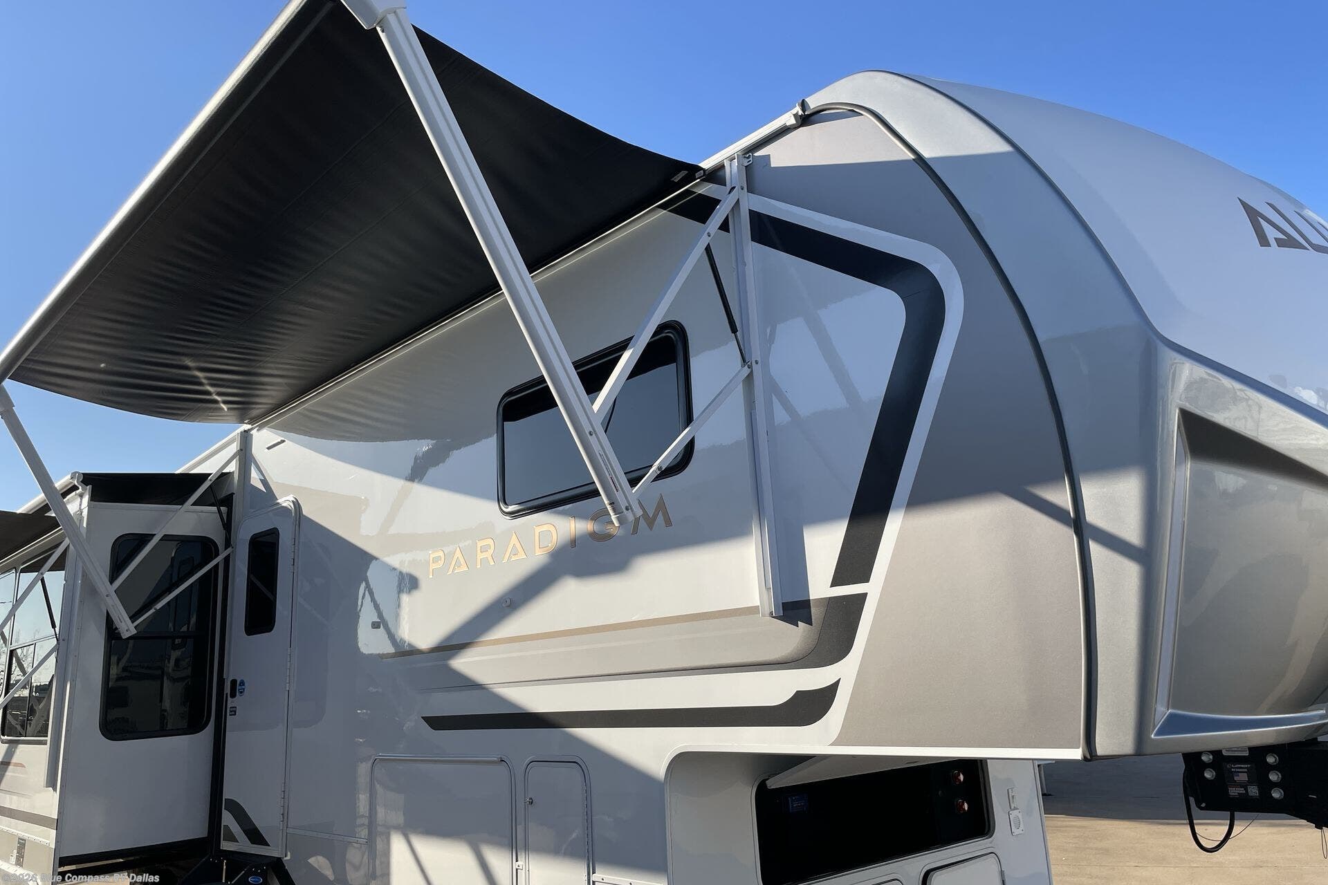 The Paradigm fifth wheels by Alliance RV are functional, high-quality, and luxurious for an unforgettable camping experience. There are three A/C units and a 40K BTU furnace to keep you comfortable year around, and you'll appreciate additional convenient amenities, like the all-in-one enclosed/heated utility center and the color coded and numbered wiring. A Helux Series coil spring pin box comes standard for hassle-free towing, along with Curt 8,000 lb. axles. You'll love the kitchen with its LG solid surface countertops and Lusso range, plus there is LED motion lighting in the pantry and a Maxx fan with a rain sensor to keep everything fresh when making dinner. Each model also includes an HD Smart TV in the living room and bedroom. And of course there are a variety of options you can choose from to further customize your fifth wheel; dual pane windows, Super Solar Plus, slide out awning toppers, and generator prep or a generator to name a few!