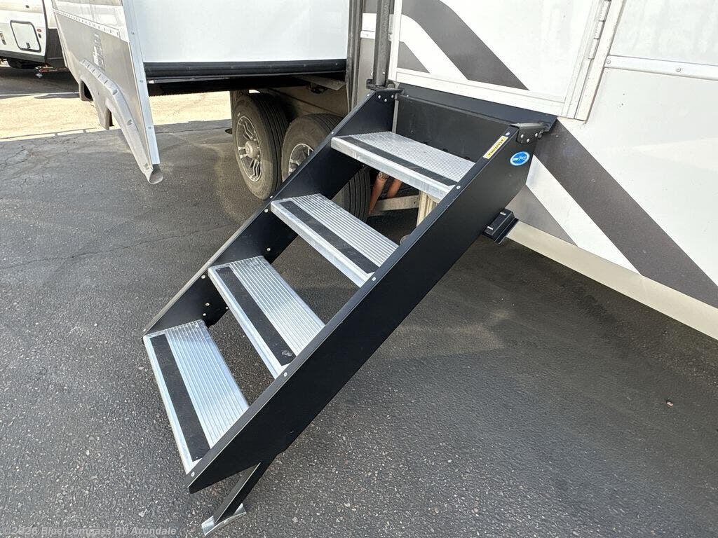 The Paradigm fifth wheels by Alliance RV are functional, high-quality, and luxurious for an unforgettable camping experience. There are three A/C units and a 40K BTU furnace to keep you comfortable year around, and you'll appreciate additional convenient amenities, like the all-in-one enclosed/heated utility center and the color coded and numbered wiring. A Helux Series coil spring pin box comes standard for hassle-free towing, along with Curt 8,000 lb. axles. You'll love the kitchen with its LG solid surface countertops and Lusso range, plus there is LED motion lighting in the pantry and a Maxx fan with a rain sensor to keep everything fresh when making dinner. Each model also includes an HD Smart TV in the living room and bedroom. And of course there are a variety of options you can choose from to further customize your fifth wheel; dual pane windows, Super Solar Plus, slide out awning toppers, and generator prep or a generator to name a few!
