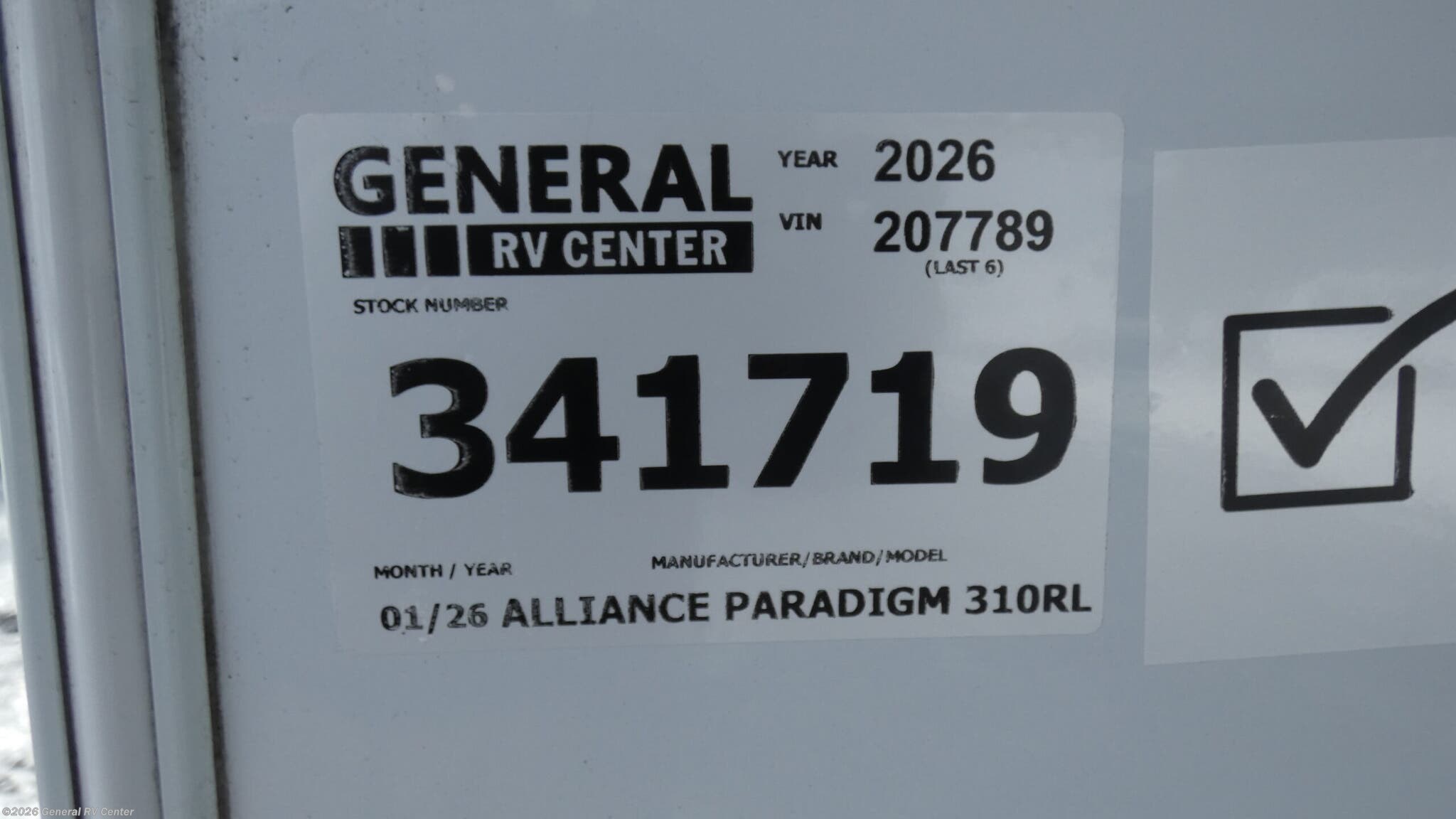 Request More Info on this 2026 Alliance RV Paradigm 310RL Offered for sale by General RV Center