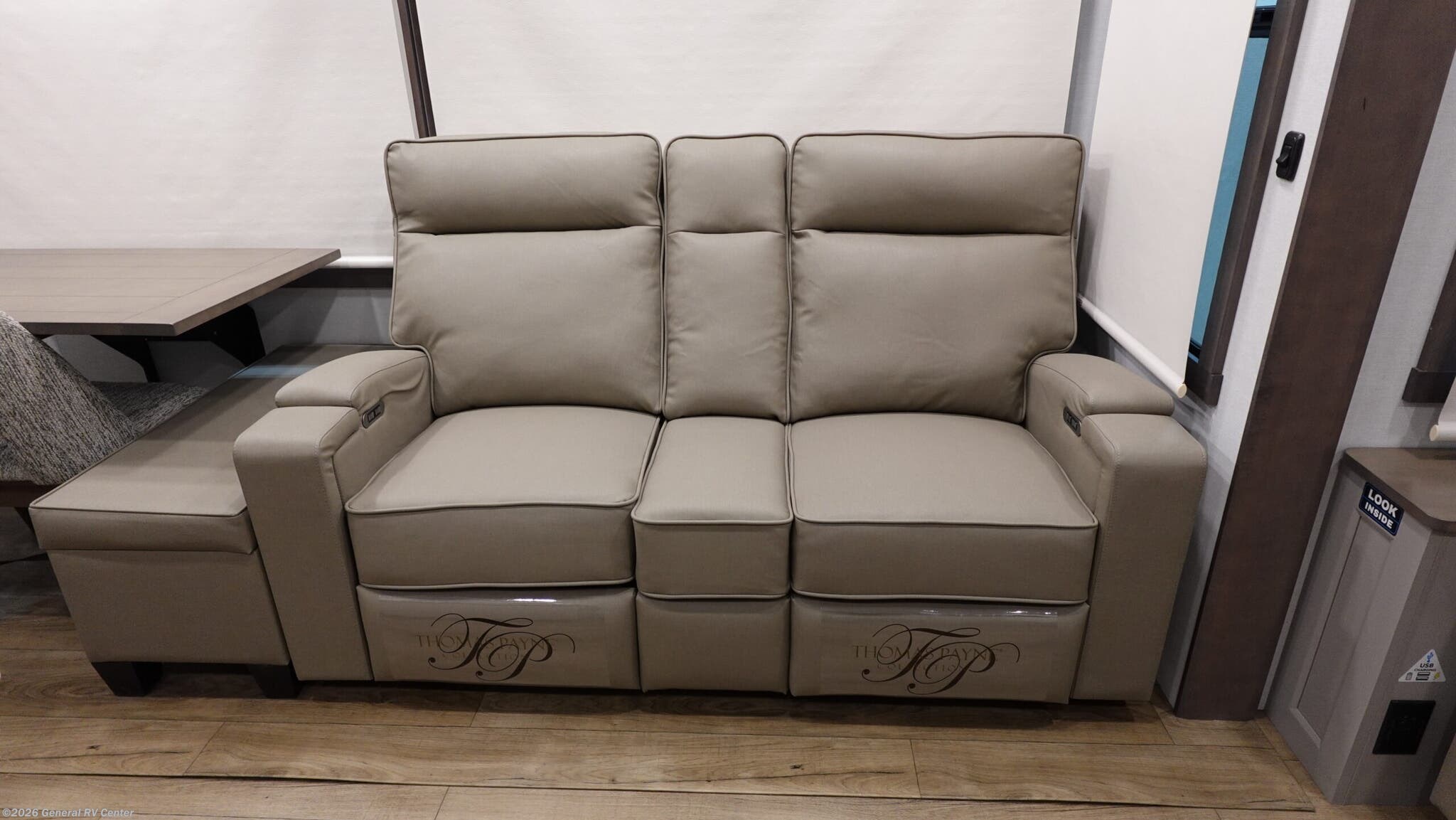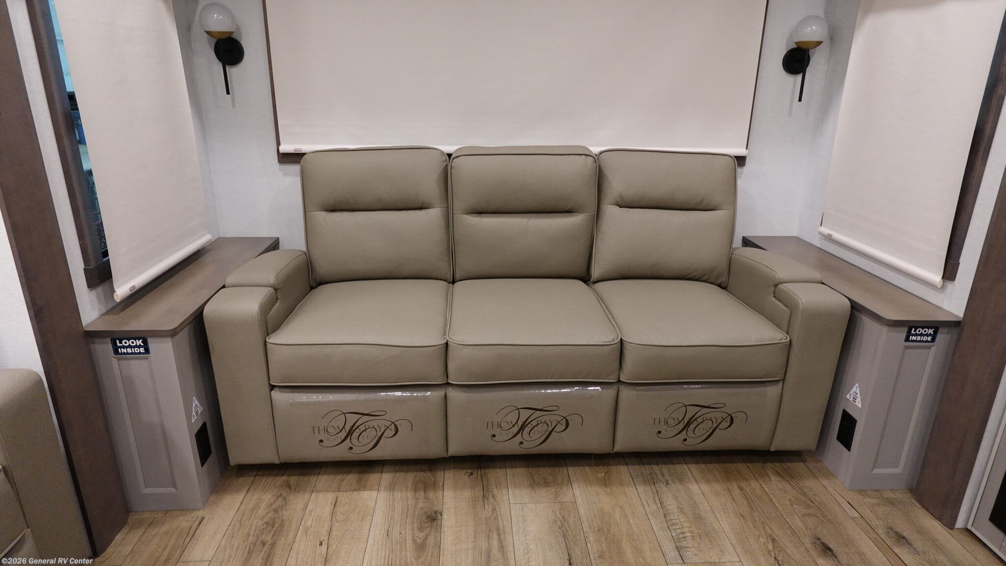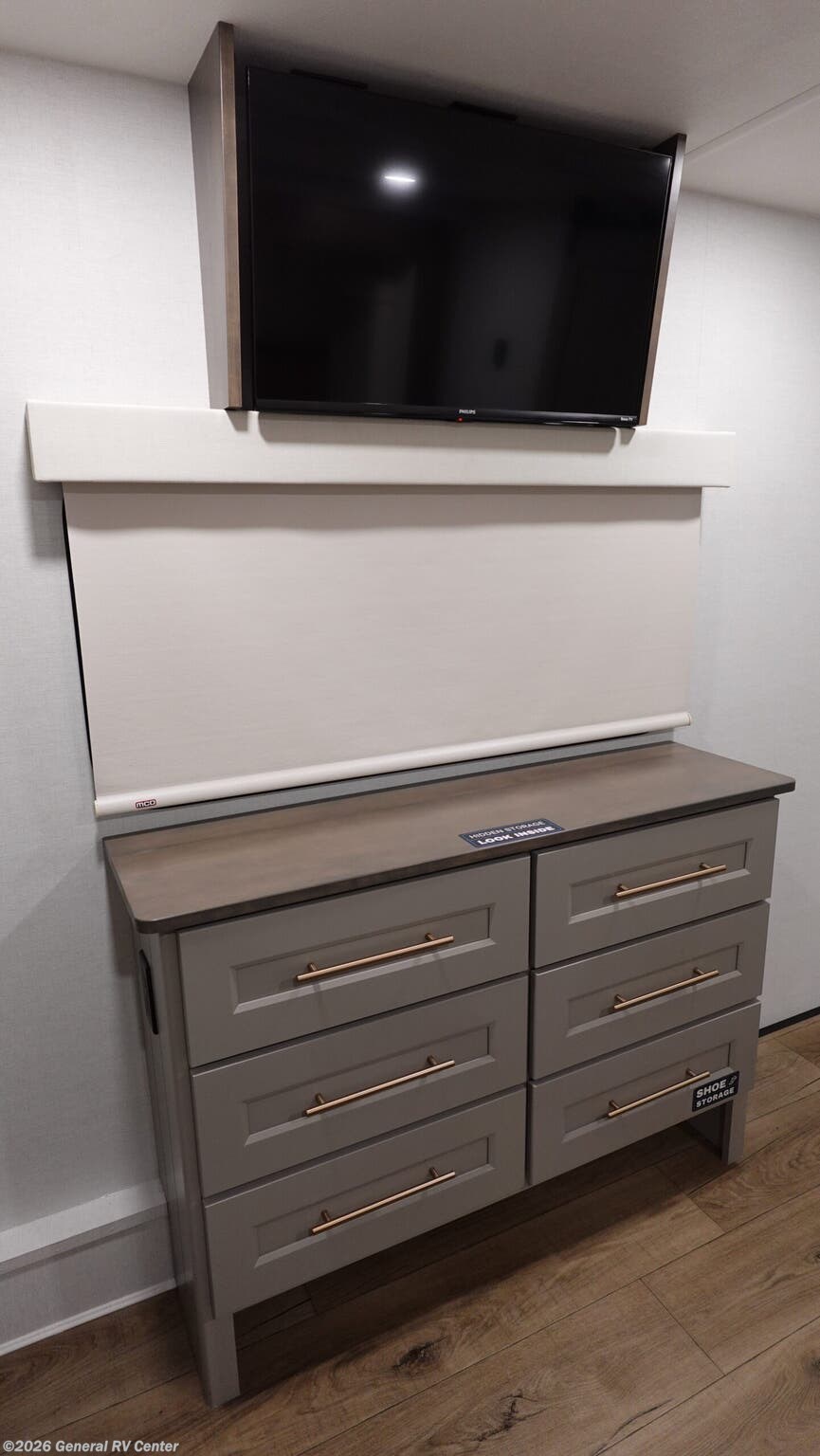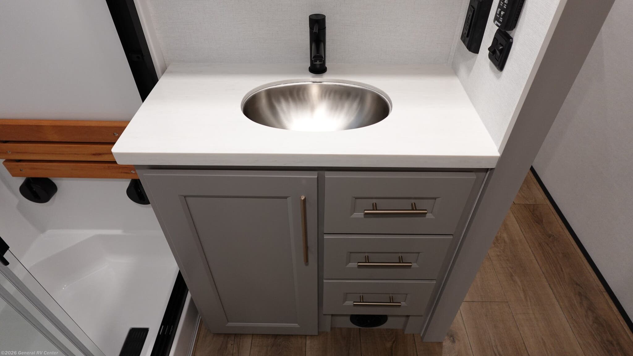 Alliance RV Paradigm fifth wheel 310RL highlights: Rear Living Area Kitchen Island Flush-Floor Kitchen Slide Swivel Table and Desk Hidden Pantry Behind Fireplace Search for the best views, the nicest RV park, or a place you haven't seen for years with this Paradigm in tow! There is a king bed slide in the master bedroom, a Smart TV, and a dresser with flip-up hidden storage for your belongings. The full bathroom offers a large residential shower, a porcelain toilet with a soft close seat, and storage for your linens, while the kitchen gives you two pantries, an island with a large undermount single basin sink and dishwasher prep if you want the option for easy clean up. You will also have a residential microwave and range, plus a 3.73 cu. ft. oven to make meals. When you're ready to relax for the evening, head to the rear living area to enjoy the dual recliner love seat across from the 50" Smart TV and fireplace! The Paradigm fifth wheels by Alliance RV are functional, high-quality, and luxurious for an unforgettable camping experience. There are three A/C units and a 40K BTU furnace to keep you comfortable year around, and you'll appreciate additional convenient amenities, like the all-in-one enclosed/heated utility center and the color coded and numbered wiring. A Helux Series coil spring pin box comes standard for hassle-free towing, along with Curt 8,000 lb. axles. You'll love the kitchen with its LG solid surface countertops and Lusso range, plus there is LED motion lighting in the pantry and a Maxx fan with a rain sensor to keep everything fresh when making dinner. Each model also includes an HD Smart TV in the living room and bedroom.