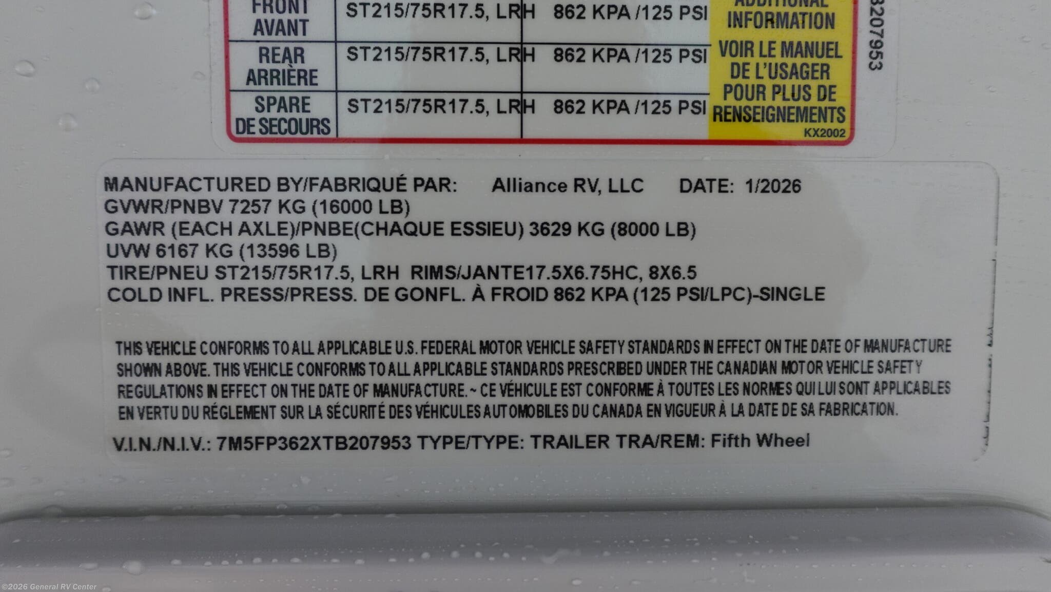- VIN7M5FP362XTB207953