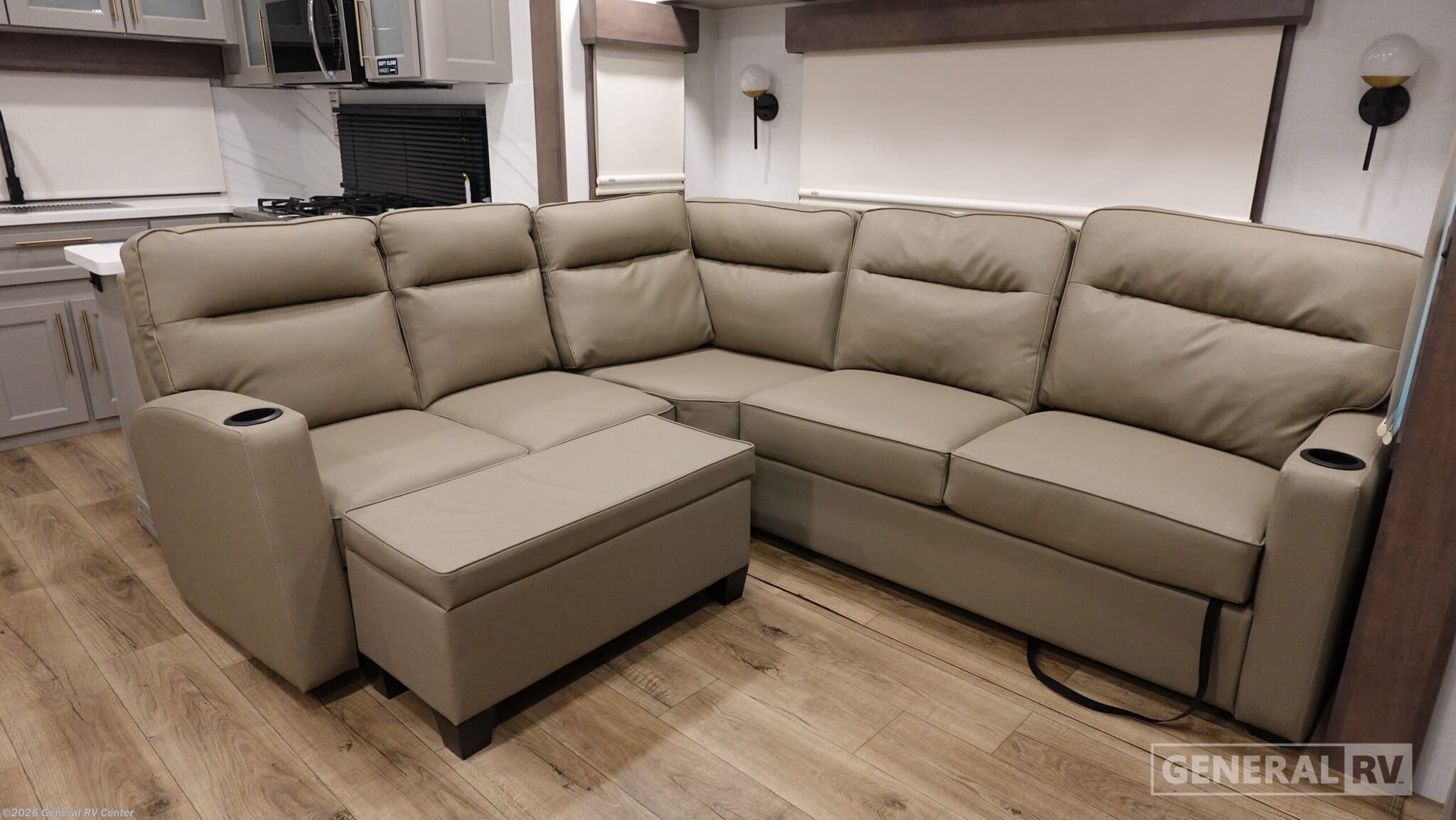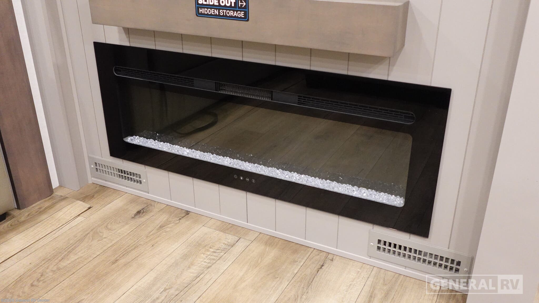 **Alliance RV Paradigm fifth wheel 312RK highlights:** - Rear Kitchen - Fireplace - Pantry Storage - Full Bathroom - L-shaped Sofa Escape the ordinary and experience the ultimate in luxury travel with this stunning fifth wheel! The rear kitchen is the heart of this fifth wheel, featuring a spacious pantry, 12V refrigerator, microwave, and overhead cabinets. Prepare delicious meals with ease and enjoy the convenience of a fully-equipped kitchen. Unwind in the spacious living area, featuring a plush trifold sofa, L-shape sofa, and a dual recliner love seat. Gather around the turntable dinette or relax in front of the stunning 65” TV. The full bathroom provides a serene space for personal care, while the front bedroom is a peaceful retreat with a comfortable queen bed and a flip-top dresser. Enjoy your favorite shows on the smart TV, perfect for relaxing after a day of adventure. The Paradigm fifth wheels by Alliance RV are functional, high-quality, and luxurious for an unforgettable camping experience. There are three A/C units and a 40K BTU furnace to keep you comfortable year around, and you'll appreciate additional convenient amenities, like the all-in-one enclosed/heated utility center and the color coded and numbered wiring. A Helux Series coil spring pin box comes standard for hassle-free towing, along with Curt 8,000 lb. axles. You'll love the kitchen with its LG solid surface countertops and Lusso range, plus there is LED motion lighting in the pantry and a Maxx fan with a rain sensor to keep everything fresh when making dinner. Each model also includes an HD Smart TV in the living room and bedroom.