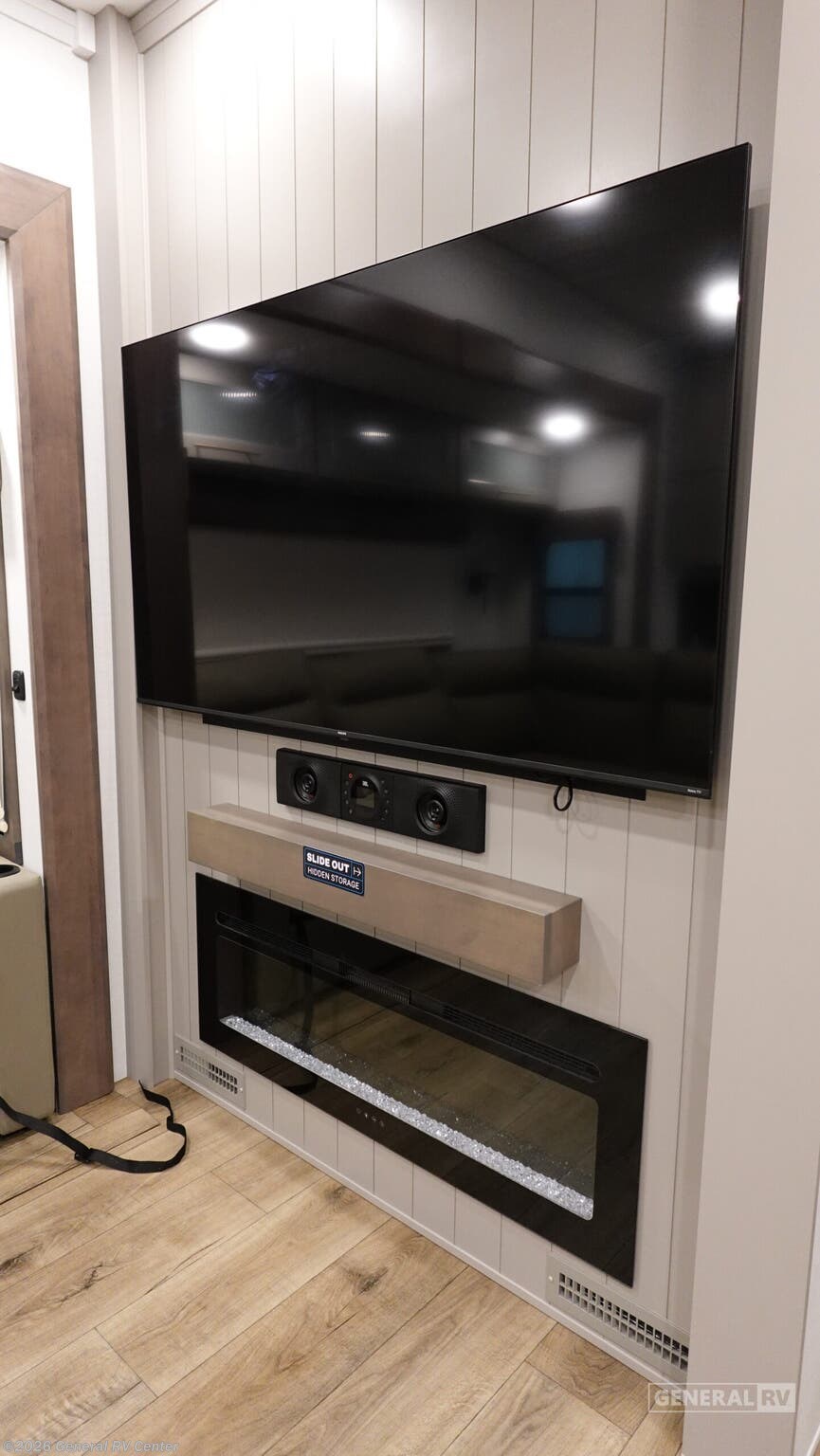 **Alliance RV Paradigm fifth wheel 312RK highlights:** - Rear Kitchen - Fireplace - Pantry Storage - Full Bathroom - L-shaped Sofa Escape the ordinary and experience the ultimate in luxury travel with this stunning fifth wheel! The rear kitchen is the heart of this fifth wheel, featuring a spacious pantry, 12V refrigerator, microwave, and overhead cabinets. Prepare delicious meals with ease and enjoy the convenience of a fully-equipped kitchen. Unwind in the spacious living area, featuring a plush trifold sofa, L-shape sofa, and a dual recliner love seat. Gather around the turntable dinette or relax in front of the stunning 65” TV. The full bathroom provides a serene space for personal care, while the front bedroom is a peaceful retreat with a comfortable queen bed and a flip-top dresser. Enjoy your favorite shows on the smart TV, perfect for relaxing after a day of adventure. The Paradigm fifth wheels by Alliance RV are functional, high-quality, and luxurious for an unforgettable camping experience. There are three A/C units and a 40K BTU furnace to keep you comfortable year around, and you'll appreciate additional convenient amenities, like the all-in-one enclosed/heated utility center and the color coded and numbered wiring. A Helux Series coil spring pin box comes standard for hassle-free towing, along with Curt 8,000 lb. axles. You'll love the kitchen with its LG solid surface countertops and Lusso range, plus there is LED motion lighting in the pantry and a Maxx fan with a rain sensor to keep everything fresh when making dinner. Each model also includes an HD Smart TV in the living room and bedroom.