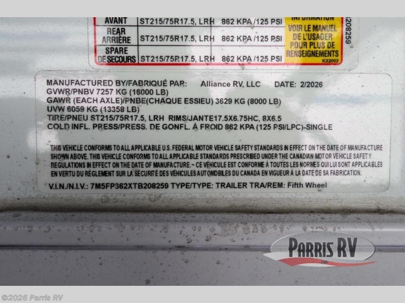 Request More Info on this 2026 Alliance RV Paradigm 312RK Offered for sale by Parris RV