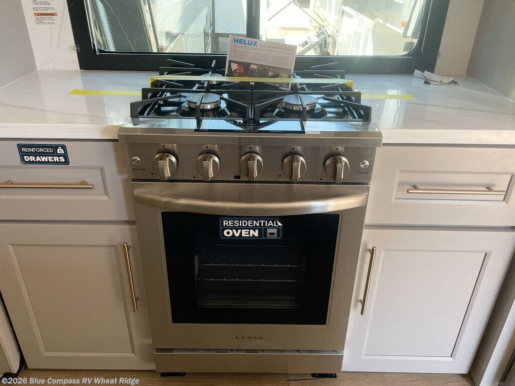 The Paradigm fifth wheels by Alliance RV are functional, high-quality, and luxurious for an unforgettable camping experience. There are three A/C units and a 40K BTU furnace to keep you comfortable year around, and you'll appreciate additional convenient amenities, like the all-in-one enclosed/heated utility center and the color coded and numbered wiring. A Helux Series coil spring pin box comes standard for hassle-free towing, along with Super-G 4,400 lb. rated tires and Dexter 7,000 lb. axles. You'll love the kitchen with its LG solid surface countertops and Lusso range, plus there is LED motion lighting in the pantry and a Maxx fan with a rain sensor to keep everything fresh when making dinner. Each model also includes an HD Smart TV in the living room and bedroom, plus a Winegard Air 360 antenna to keep you connected to the outside world. And of course there are a variety of options you can choose from to further customize your fifth wheel; dual pane windows, Super Solar Plus, slide out awning toppers, and generator prep or a generator to name a few!