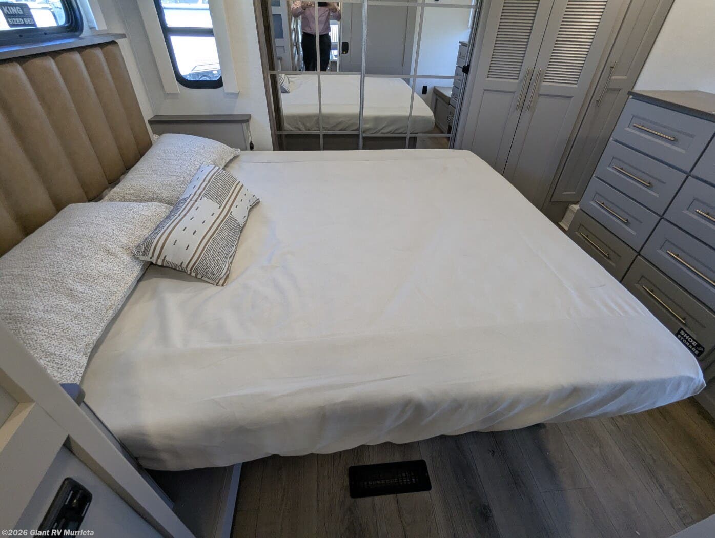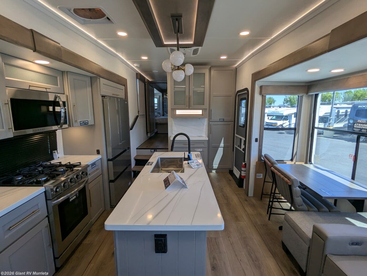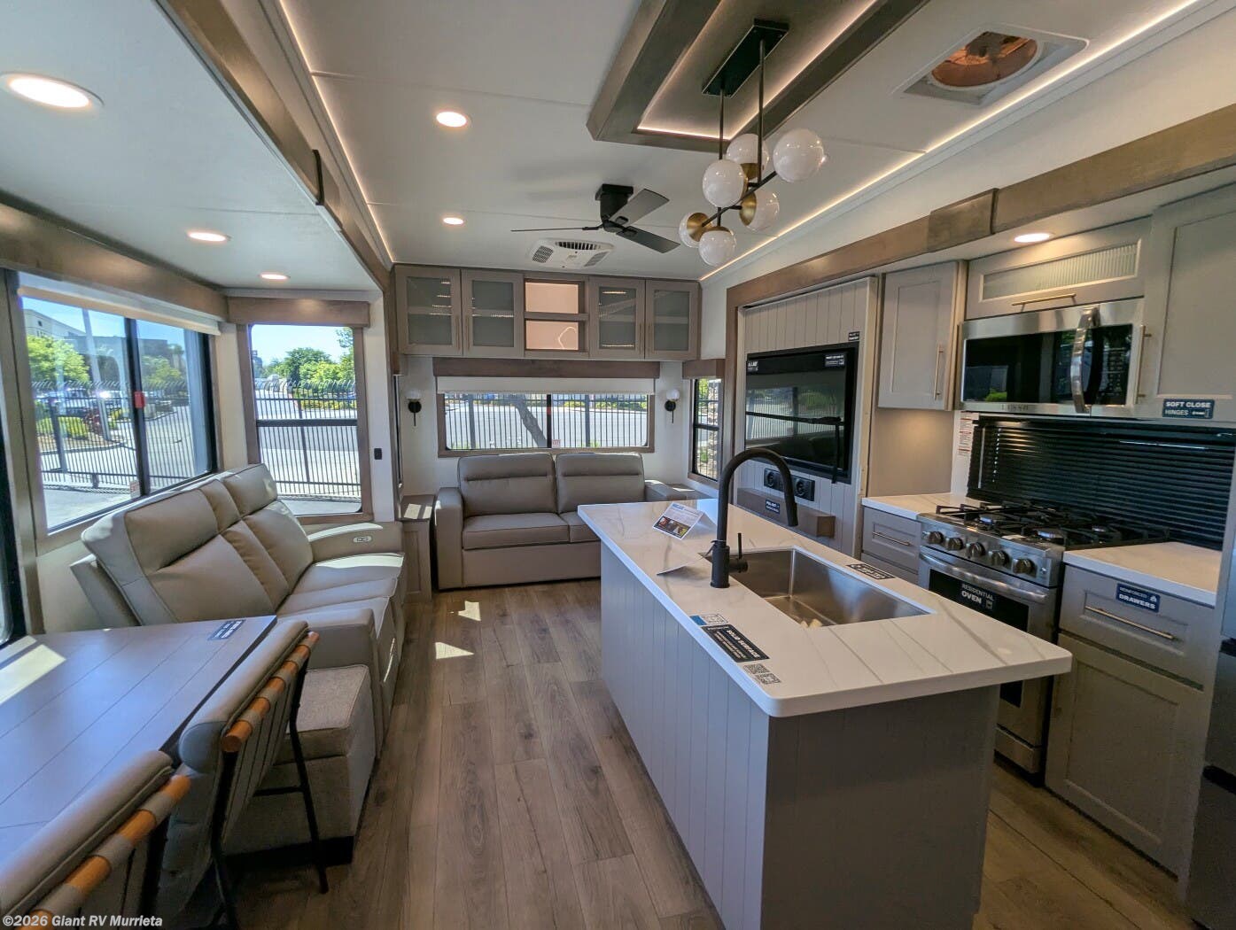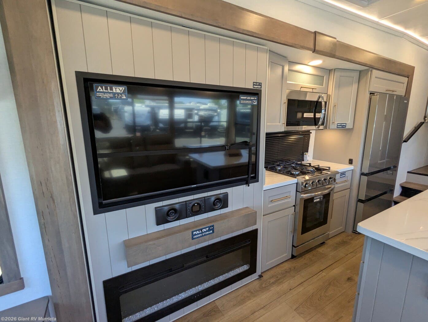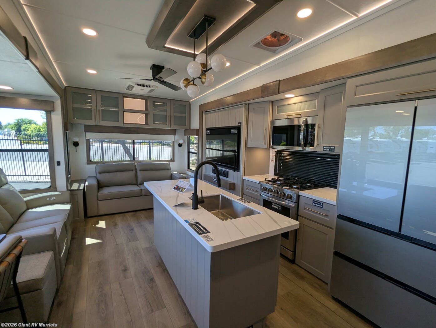 Experience premium RV camping with the 2025 Alliance RV Paradigm 340RL fifth wheel at Giant RV in California! Ideal for couples, this RV features a rear living area with dual opposing slide-outs, theater seating, a tri-fold sofa, and 50” LED TV, plus a front king bedroom. The kitchen boasts a 19 cu. ft. fridge, Insignia range, and island. A full bath with shower ensures comfort. Enjoy a 16’ power awning, exterior storage, and a 98.3-gal fresh water tank. Equipped with three 13,500 BTU A/Cs, a 40,000 BTU furnace, and 6-point hydraulic leveling for off-grid luxury.