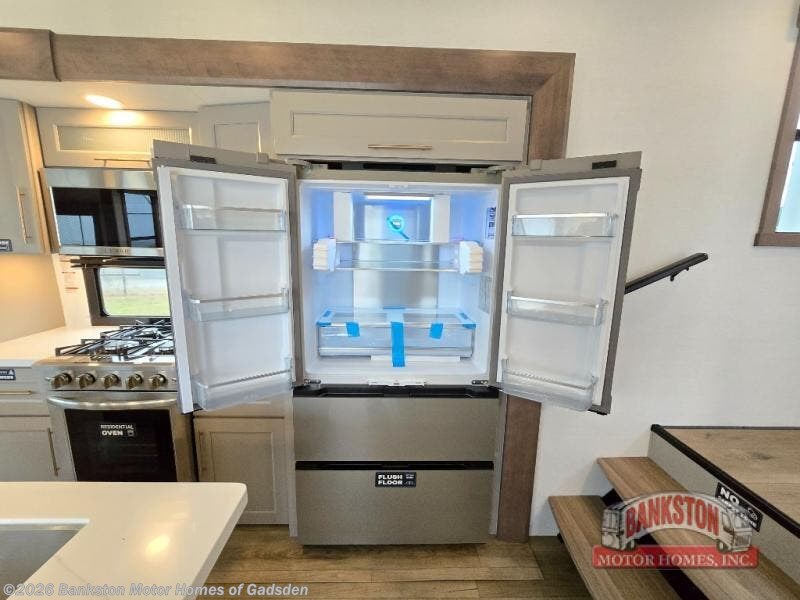 The Paradigm fifth wheels by Alliance RV are functional, high-quality, and luxurious for an unforgettable camping experience. There are three A/C units and a 40K BTU furnace to keep you comfortable year around, and you'll appreciate additional convenient amenities, like the all-in-one enclosed/heated utility center and the color coded and numbered wiring. A Helux Series coil spring pin box comes standard for hassle-free towing, along with Super-G 4,400 lb. rated tires and Dexter 7,000 lb. axles. You'll love the kitchen with its LG solid surface countertops and Lusso range, plus there is LED motion lighting in the pantry and a Maxx fan with a rain sensor to keep everything fresh when making dinner. Each model also includes an HD Smart TV in the living room and bedroom, plus a Winegard Air 360 antenna to keep you connected to the outside world. And of course there are a variety of options you can choose from to further customize your fifth wheel; dual pane windows, Super Solar Plus, slide out awning toppers, and generator prep or a generator to name a few!