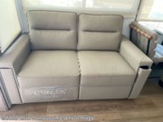 You won't want to camp any other way once you step inside this fifth wheel! The chef will enjoy all of the space in the rear kitchen with ample counter space, a 19 cu. ft. 12 volt residential refrigerator, and a pantry for snacks. Everyone will love to meet in the middle living area that includes dual sleeper sofas and a dual recliner loveseat across from the 50" Smart TV and fireplace. The half bathroom is nearby for quick bathroom breaks too. You will feel right at home in the master suite with a king bed slide to lay your head on at night, a flip top dresser with a Smart TV above it to watch your movies in true comfort, and a seat with storage, plus access to the front full bathroom. Inside the bathroom, you will find a 61" x 30" shower to freshen up in and a walk-in closet with a hamper, shelves, and washer and dryer prep for clean clothes throughout your entire trip!