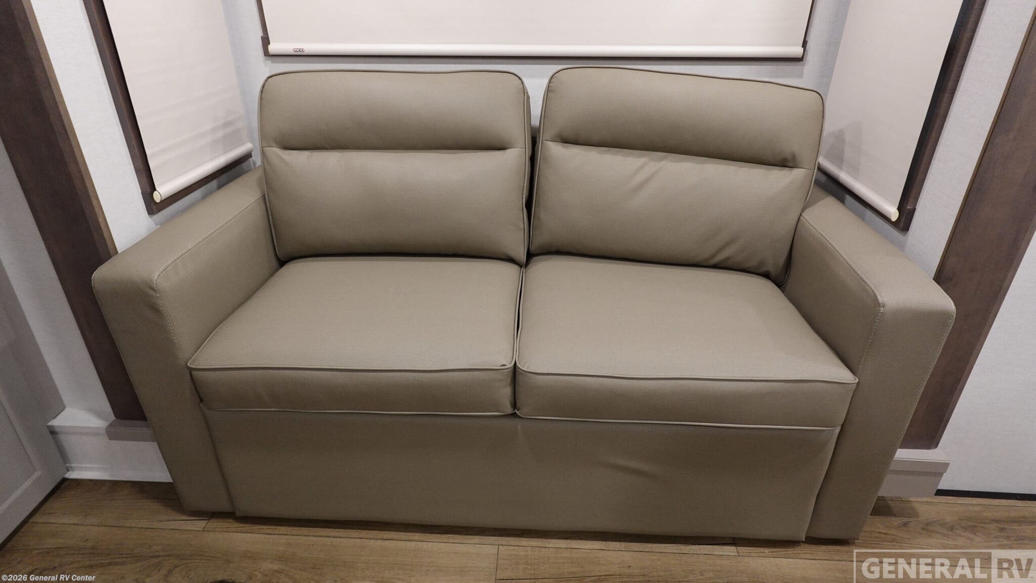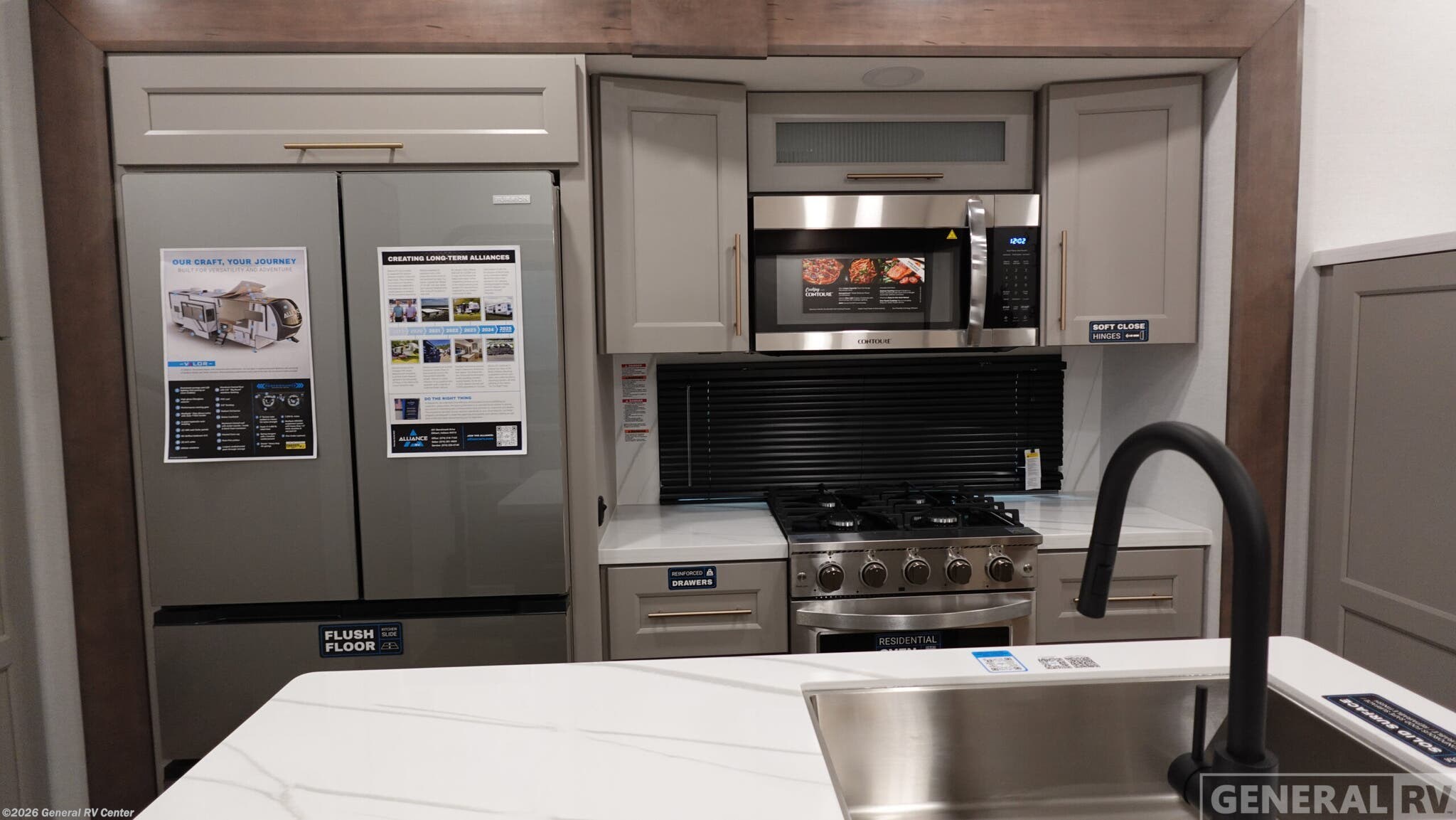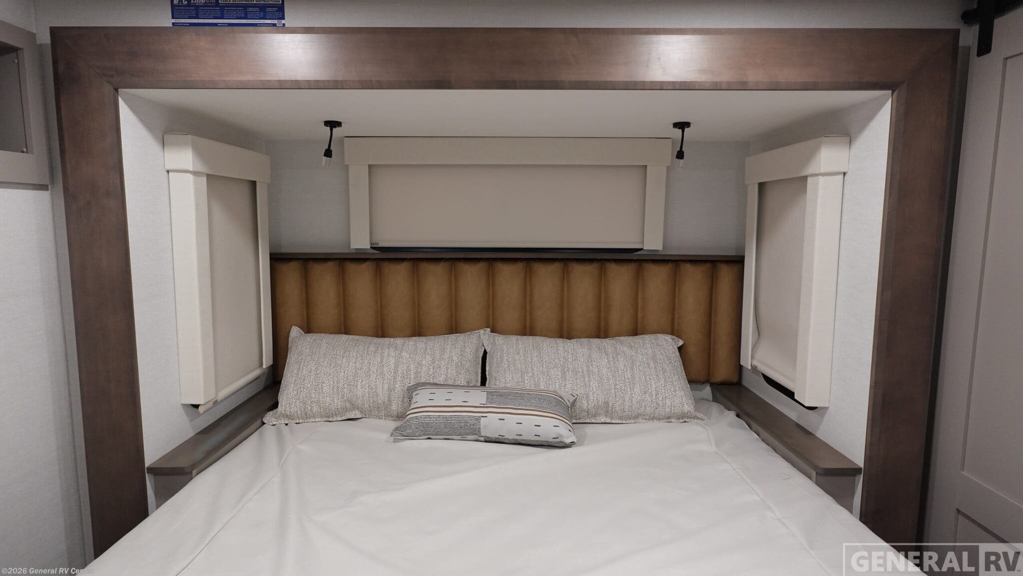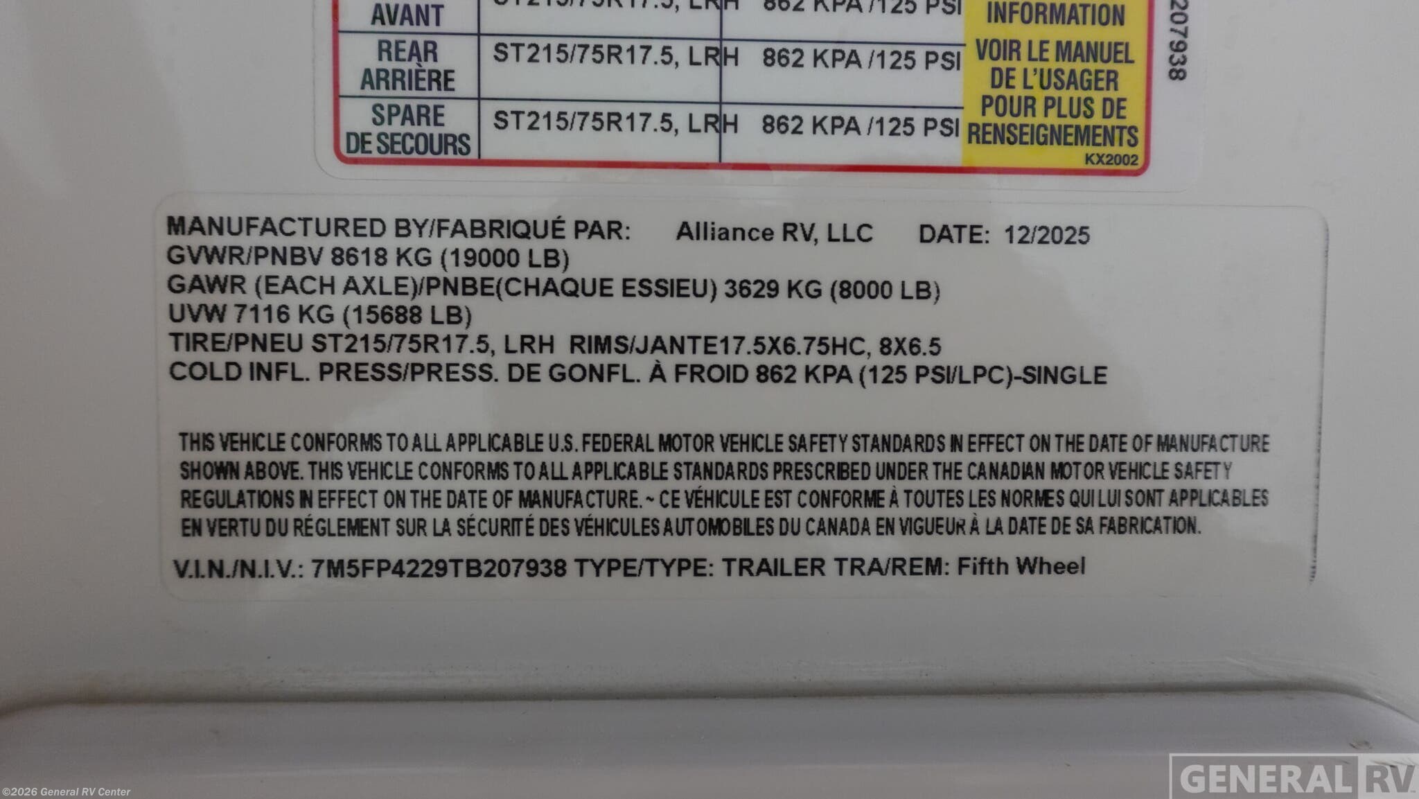 Discover the 2026 Alliance RV Paradigm 385FL, a luxurious haven on wheels designed for those who crave adventure without sacrificing comfort. This spacious fifth wheel is crafted to accommodate up to six sleepers, offering a blend of elegance and functionality. The front living area is a true highlight, featuring plush sleeper sofas that invite relaxation and entertainment, while the center kitchen is a culinary enthusiast's dream with a full-size electric refrigerator and four-burner cooktop. Whether you're hosting friends or enjoying a quiet night in, this RV provides the perfect backdrop for any occasion. Step into the center bedroom, where a king bed promises restful nights, and enjoy the convenience of washer/dryer prep for extended journeys. The rear bath, complete with a shower and ample storage, ensures a refreshing start to your day. With a generous 98-gallon fresh water capacity and powered retractable awnings, your outdoor experience is just as delightful. The Paradigm 385FL is more than just an RV; it's your ticket to exploring the open road in style and comfort. For more details or to see this model in person, visit your nearest General RV Dealership.