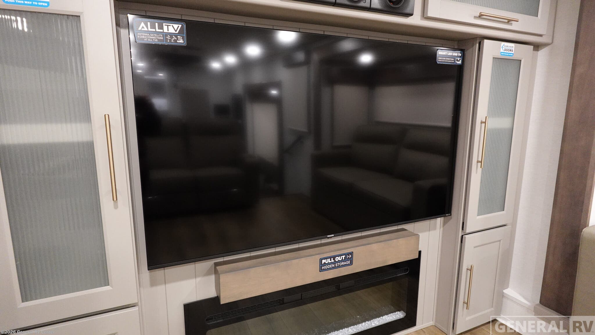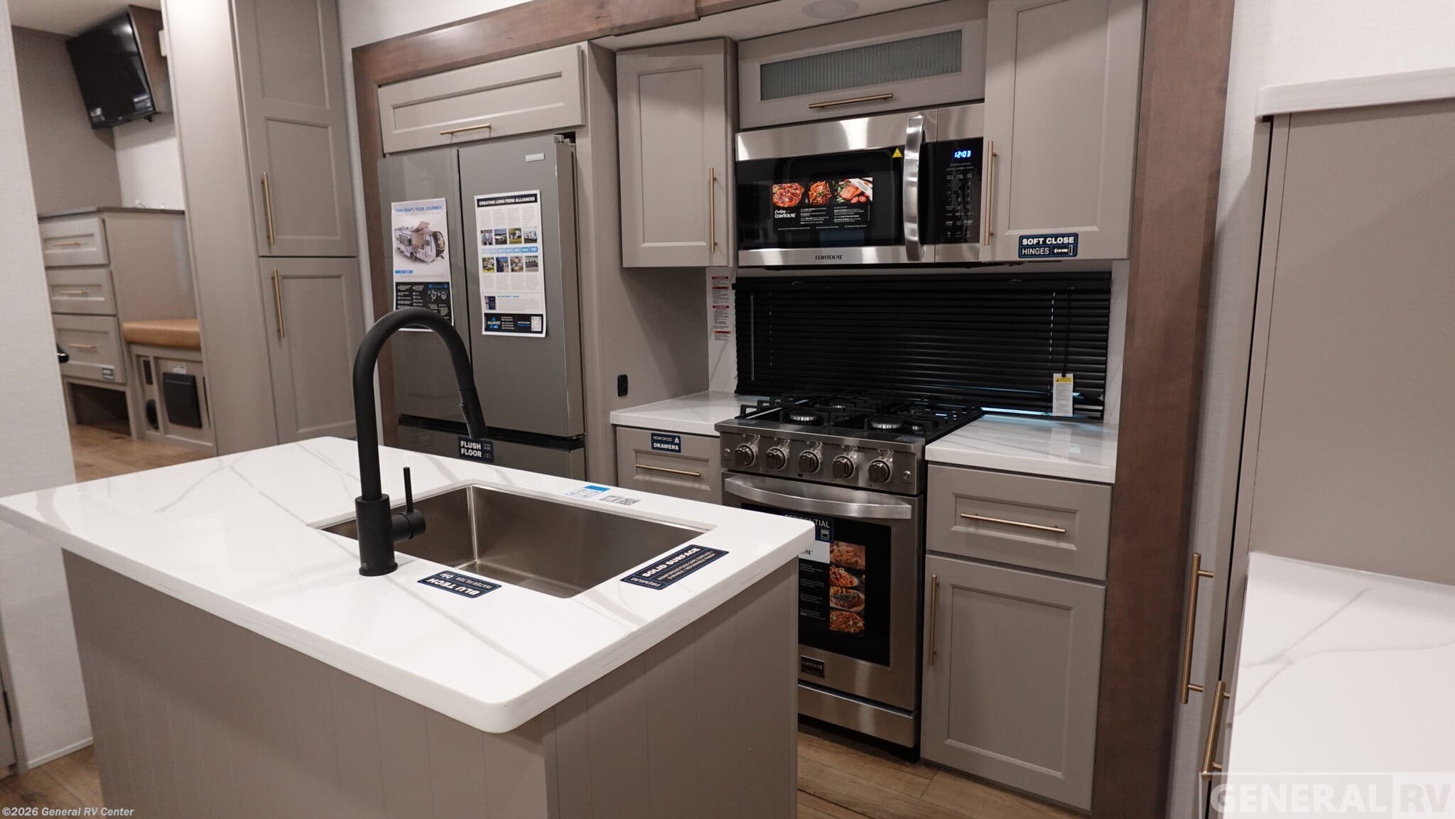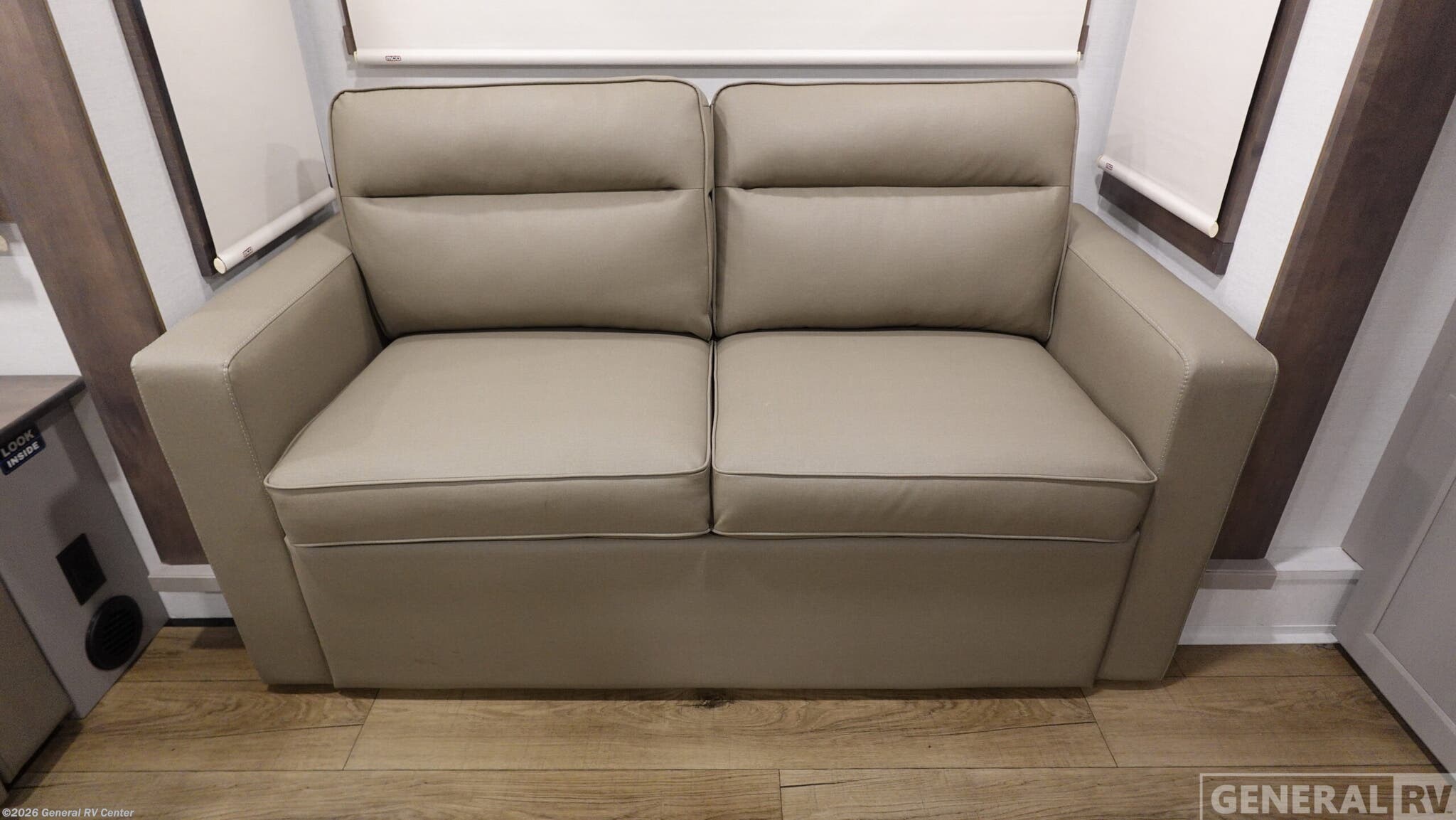 Discover the 2026 Alliance RV Paradigm 385FL, a luxurious haven on wheels designed for those who crave adventure without sacrificing comfort. This spacious fifth wheel is crafted to accommodate up to six sleepers, offering a blend of elegance and functionality. The front living area is a true highlight, featuring plush sleeper sofas that invite relaxation and entertainment, while the center kitchen is a culinary enthusiast's dream with a full-size electric refrigerator and four-burner cooktop. Whether you're hosting friends or enjoying a quiet night in, this RV provides the perfect backdrop for any occasion. Step into the center bedroom, where a king bed promises restful nights, and enjoy the convenience of washer/dryer prep for extended journeys. The rear bath, complete with a shower and ample storage, ensures a refreshing start to your day. With a generous 98-gallon fresh water capacity and powered retractable awnings, your outdoor experience is just as delightful. The Paradigm 385FL is more than just an RV; it's your ticket to exploring the open road in style and comfort. For more details or to see this model in person, visit your nearest General RV Dealership.