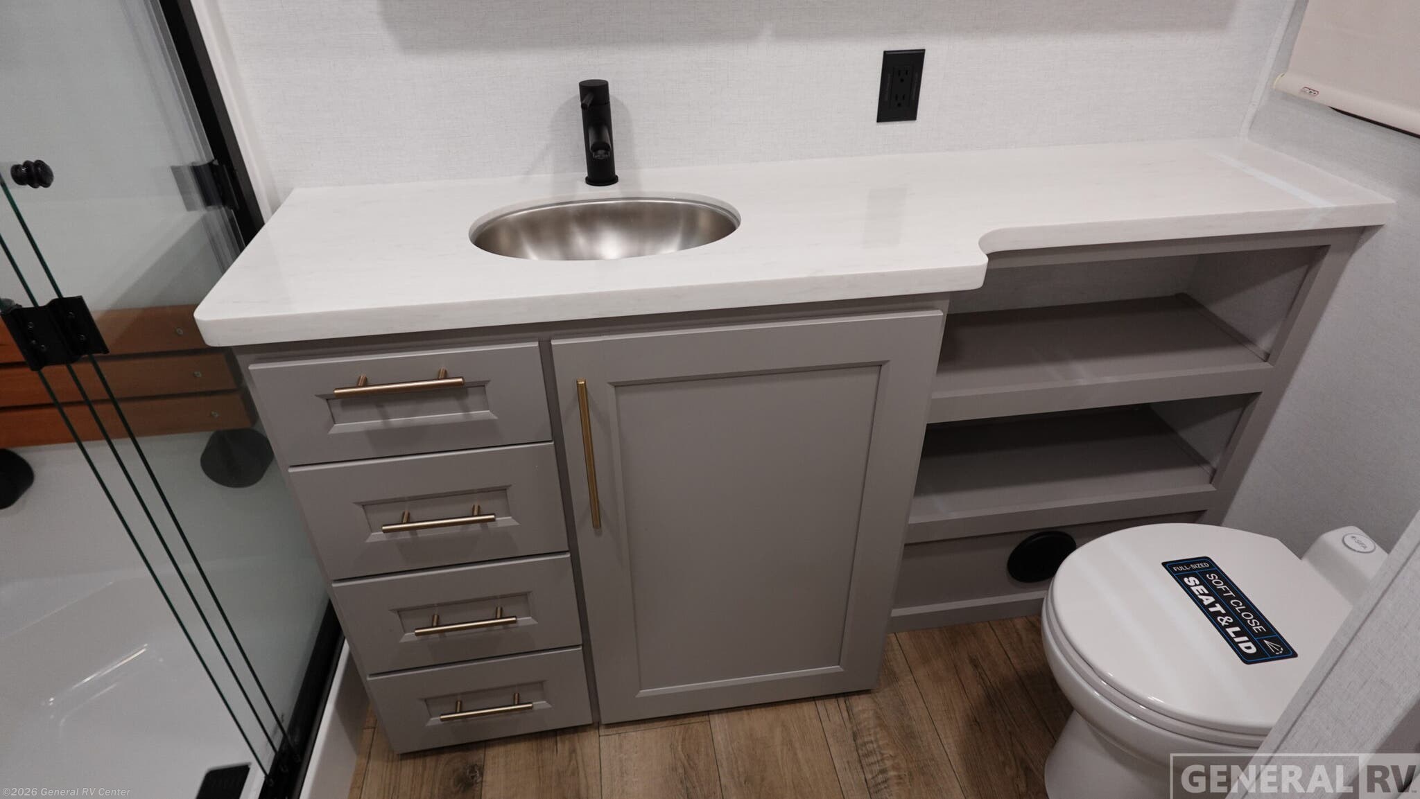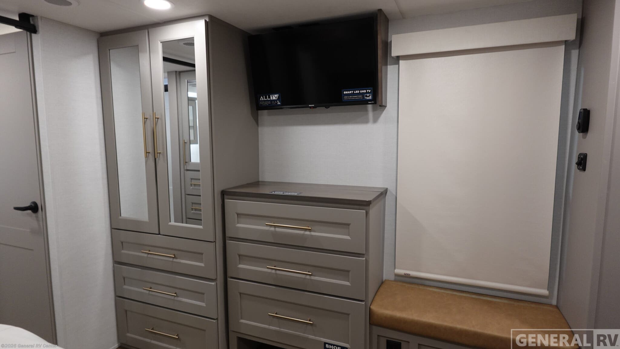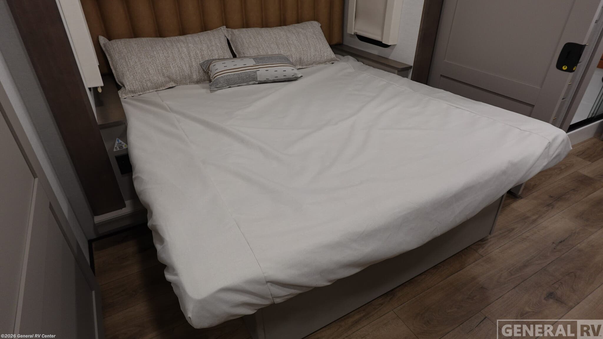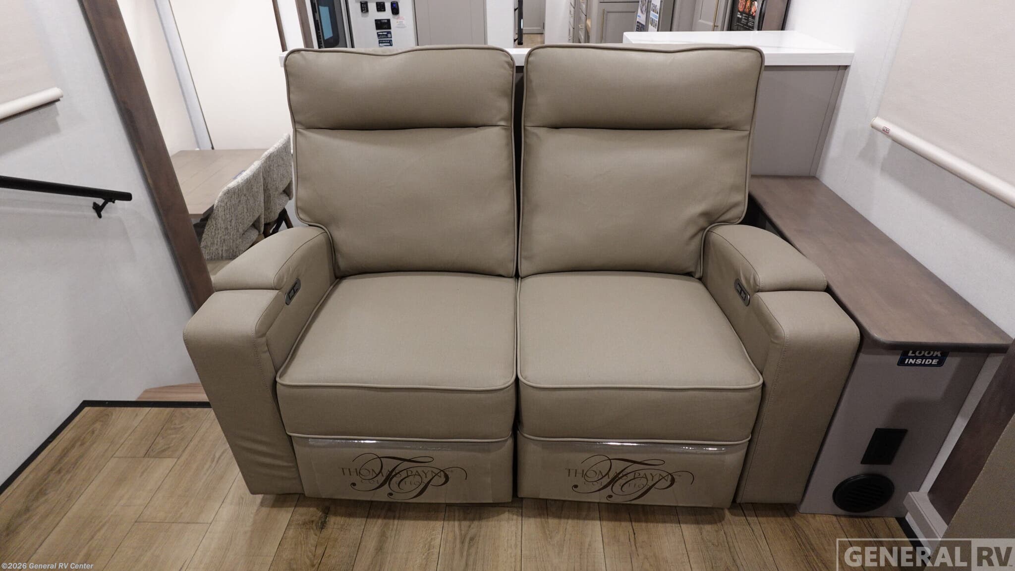 Discover the 2026 Alliance RV Paradigm 385FL, a luxurious haven on wheels designed for those who crave adventure without sacrificing comfort. This spacious fifth wheel is crafted to accommodate up to six sleepers, offering a blend of elegance and functionality. The front living area is a true highlight, featuring plush sleeper sofas that invite relaxation and entertainment, while the center kitchen is a culinary enthusiast's dream with a full-size electric refrigerator and four-burner cooktop. Whether you're hosting friends or enjoying a quiet night in, this RV provides the perfect backdrop for any occasion. Step into the center bedroom, where a king bed promises restful nights, and enjoy the convenience of washer/dryer prep for extended journeys. The rear bath, complete with a shower and ample storage, ensures a refreshing start to your day. With a generous 98-gallon fresh water capacity and powered retractable awnings, your outdoor experience is just as delightful. The Paradigm 385FL is more than just an RV; it's your ticket to exploring the open road in style and comfort. For more details or to see this model in person, visit your nearest General RV Dealership.