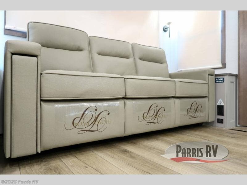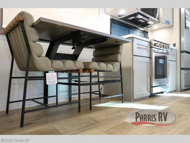 You will fall in love with this unit’s slide patio with picture window, the perfect spot to take in the breathtaking views. Enjoy outdoor cooking with the countertop prep area and pull-out grill, while the drop-down TV provides entertainment for all. Inside, rear living area features two sleeper sofas, perfect for lounging and relaxing. Overhead cabinets provide ample storage, while the 50” class smart TV offers endless entertainment options. Gather around the turn table dinette for meals or socializing. The kitchen is fully equipped with a microwave, sink, refrigerator, pantry, and hutch, making meal preparation and storage a breeze. Also this unit has a full bathroom and a cozy front bedroom which boast a king bed, ample closet, a TV, and so much more!