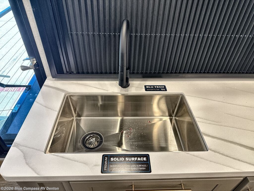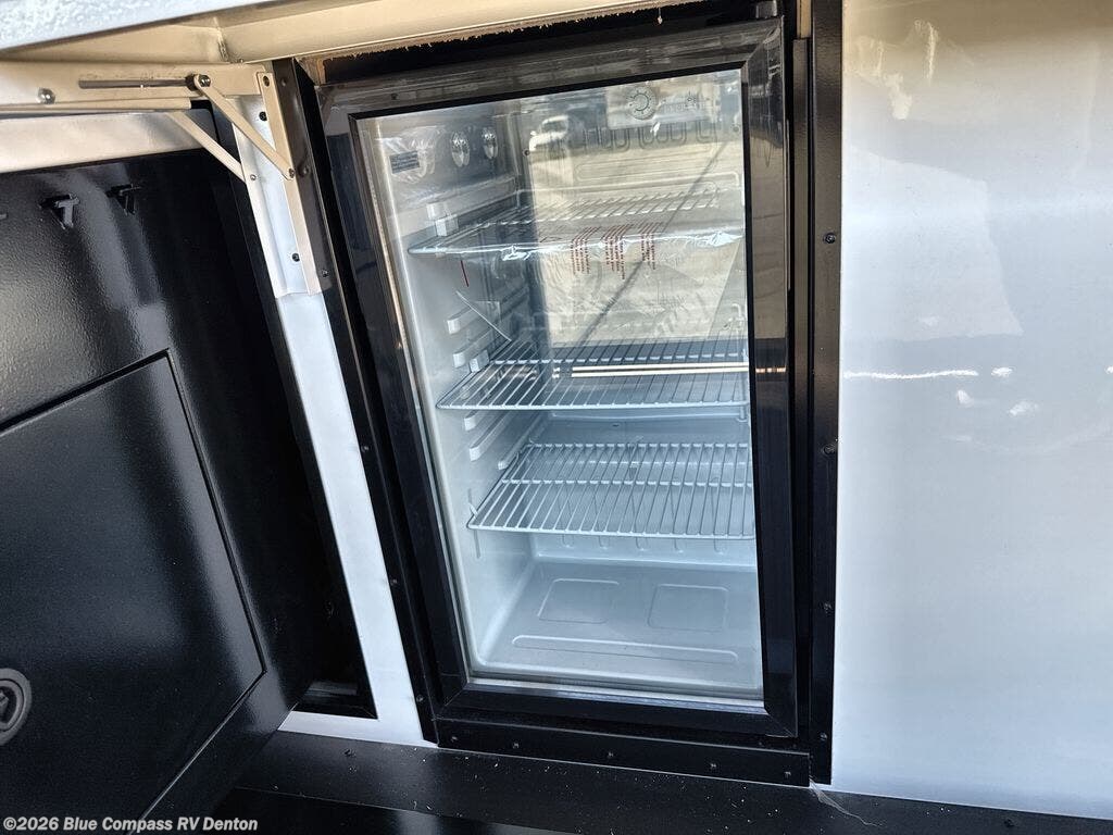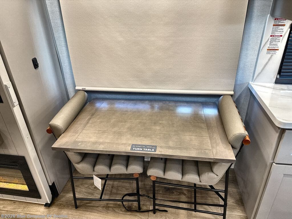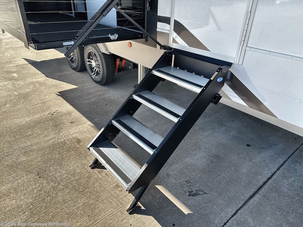 You will fall in love with this unit’s slide patio with picture window, the perfect spot to take in the breathtaking views. Enjoy outdoor cooking with the countertop prep area and pull-out grill, while the drop-down TV provides entertainment for all. Inside, rear living area features two sleeper sofas, perfect for lounging and relaxing. Overhead cabinets provide ample storage, while the 50” class smart TV offers endless entertainment options. Gather around the turn table dinette for meals or socializing. The kitchen is fully equipped with a microwave, sink, refrigerator, pantry, and hutch, making meal preparation and storage a breeze. Also this unit has a full bathroom and a cozy front bedroom which boast a king bed, ample closet, a TV, and so much more!