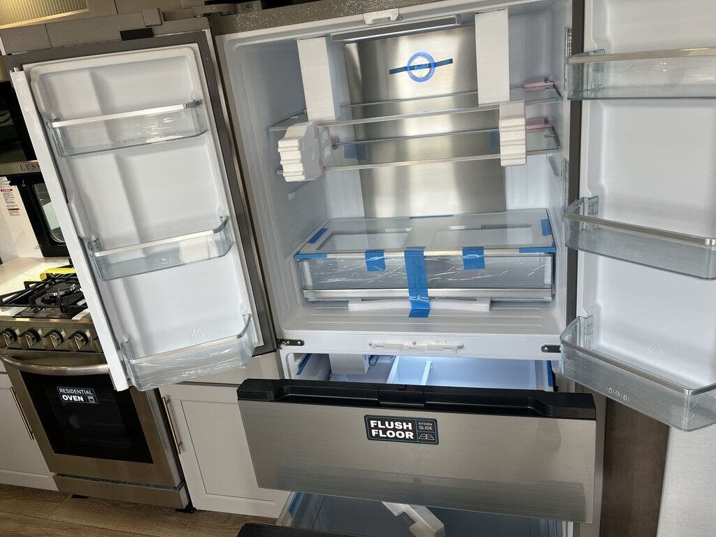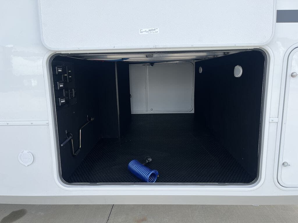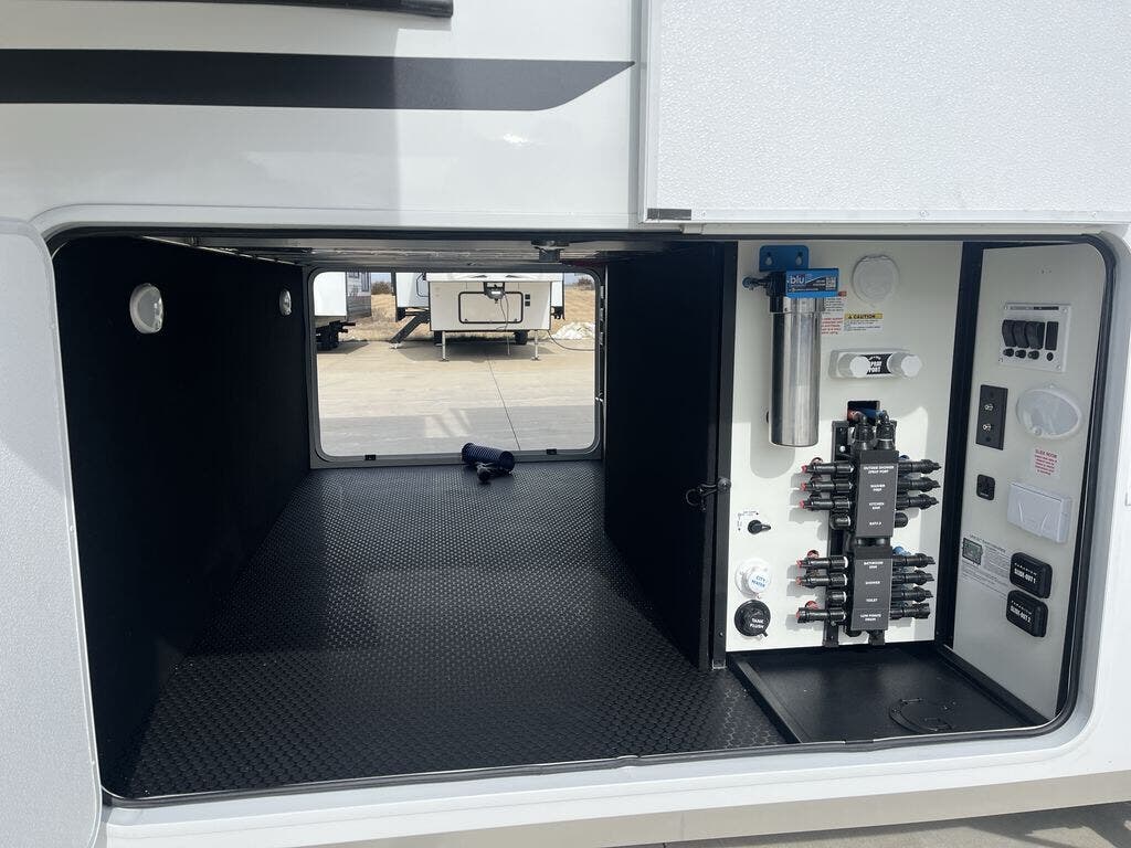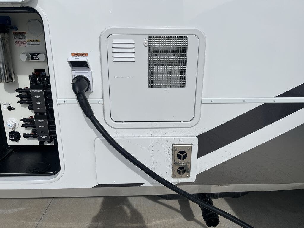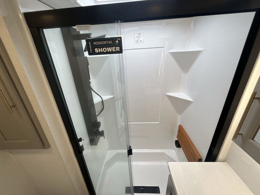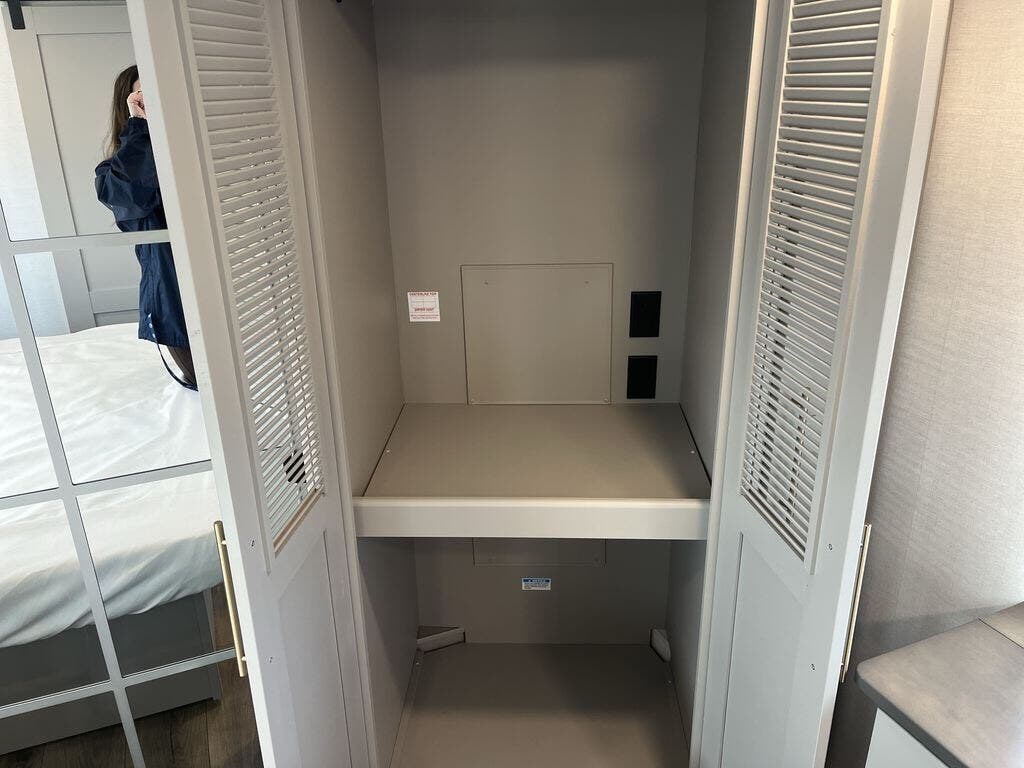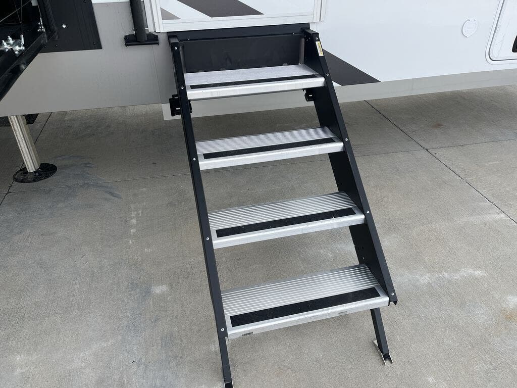 You will fall in love with this unit’s slide patio with picture window, the perfect spot to take in the breathtaking views. Enjoy outdoor cooking with the countertop prep area and pull-out grill, while the drop-down TV provides entertainment for all. Inside, rear living area features two sleeper sofas, perfect for lounging and relaxing. Overhead cabinets provide ample storage, while the 50” class smart TV offers endless entertainment options. Gather around the turn table dinette for meals or socializing. The kitchen is fully equipped with a microwave, sink, refrigerator, pantry, and hutch, making meal preparation and storage a breeze. Also this unit has a full bathroom and a cozy front bedroom which boast a king bed, ample closet, a TV, and so much more!