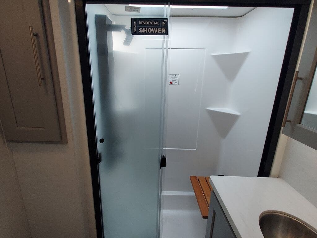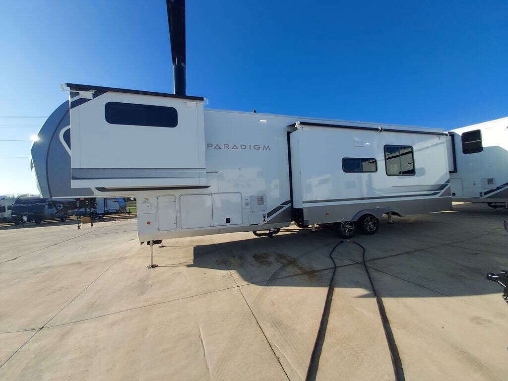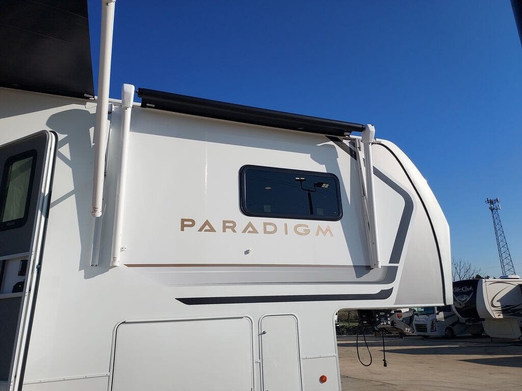 The Paradigm fifth wheels by Alliance RV are functional, high-quality, and luxurious for an unforgettable camping experience. There are three A/C units and a 40K BTU furnace to keep you comfortable year around, and you'll appreciate additional convenient amenities, like the all-in-one enclosed/heated utility center and the color coded and numbered wiring. A Helux Series coil spring pin box comes standard for hassle-free towing, along with Curt 8,000 lb. axles. You'll love the kitchen with its LG solid surface countertops and Lusso range, plus there is LED motion lighting in the pantry and a Maxx fan with a rain sensor to keep everything fresh when making dinner. Each model also includes an HD Smart TV in the living room and bedroom. And of course there are a variety of options you can choose from to further customize your fifth wheel; dual pane windows, Super Solar Plus, slide out awning toppers, and generator prep or a generator to name a few!