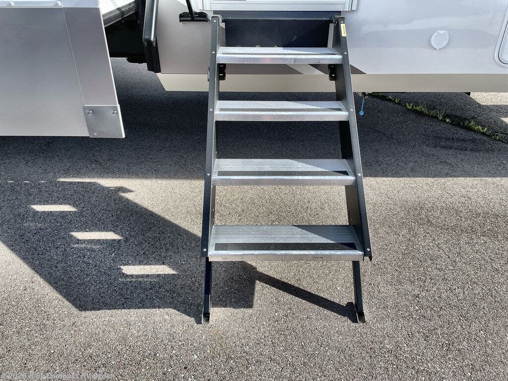 A spacious unit with sleeping for eight with plenty of choices to suit everyone! There is a front private bedroom with a king size bed that offers a large full front closet that has also been prepped for a washer and dryer if you choose that option. The front bath features a 40" x 30" shower and dual entry. Head down to the kitchen and living space at the bottom of the stairs to find a curbside slide that houses the 19 cu. ft. residential refrigerator, a pantry, and a swivel table and desk. As you continue on toward the rear of this coach, you will find a spacious living area along the roadside with a 50" Smart TV and a fireplace, a L-sofa sleeper slide, and a dual reclining loveseat. This makes a great gathering place for television watching, game playing, and even added sleeping space if needed at night. The rear private bedroom with its own private bath features a queen bed, two closets, and a Smart TV as well. The multipurpose loft area above can be accessed just before this rear bedroom entry by a ladder, and it is perfect for extra storage, or it can be used for added sleeping that the kiddos are sure to love.