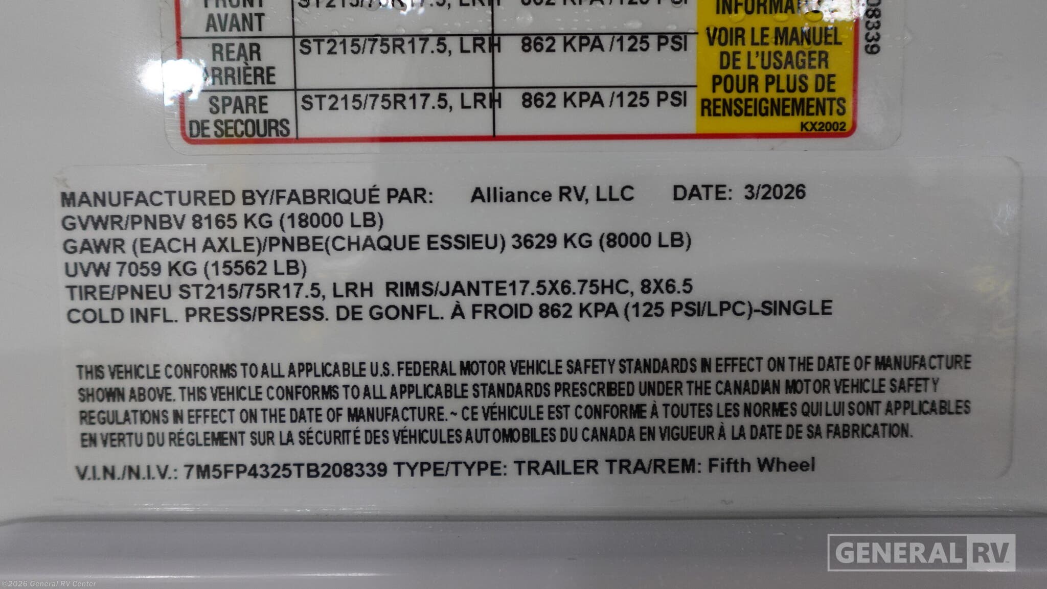 Request More Info on this 2026 Alliance RV Paradigm 395DS Offered for sale by General RV Center