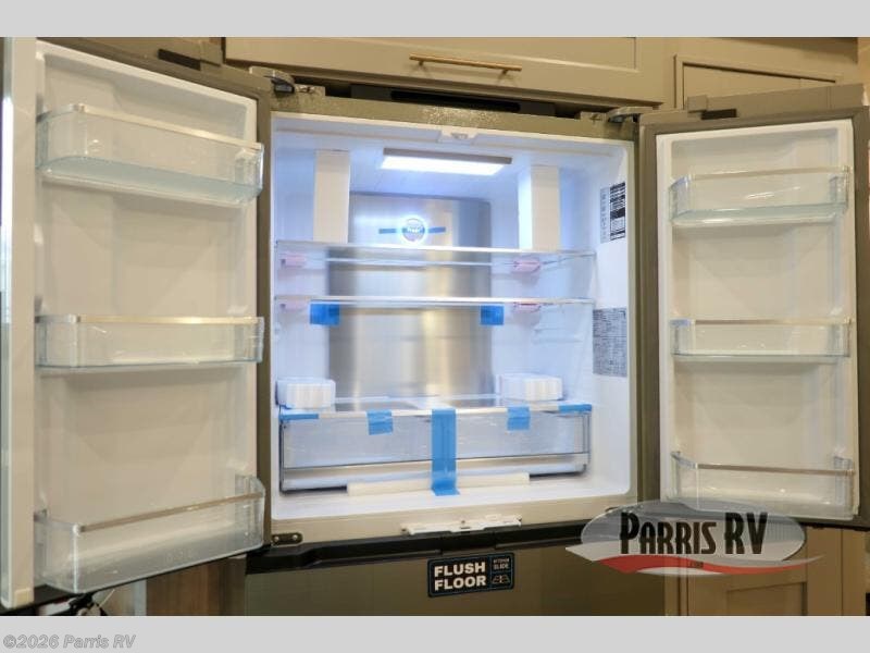 A spacious unit with sleeping for eight with plenty of choices to suit everyone! There is a front private bedroom with a king size bed that offers a large full front closet that has also been prepped for a washer and dryer if you choose that option. The front bath features a 40" x 30" shower and dual entry. Head down to the kitchen and living space at the bottom of the stairs to find a curbside slide that houses the 19 cu. ft. residential refrigerator, a pantry, and a swivel table and desk. As you continue on toward the rear of this coach, you will find a spacious living area along the roadside with a 50" Smart TV and a fireplace, a L-sofa sleeper slide, and a dual reclining loveseat. This makes a great gathering place for television watching, game playing, and even added sleeping space if needed at night. The rear private bedroom with its own private bath features a queen bed, two closets, and a Smart TV as well. The multipurpose loft area above can be accessed just before this rear bedroom entry by a ladder, and it is perfect for extra storage, or it can be used for added sleeping that the kiddos are sure to love.