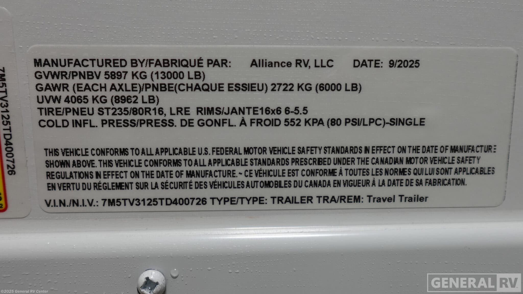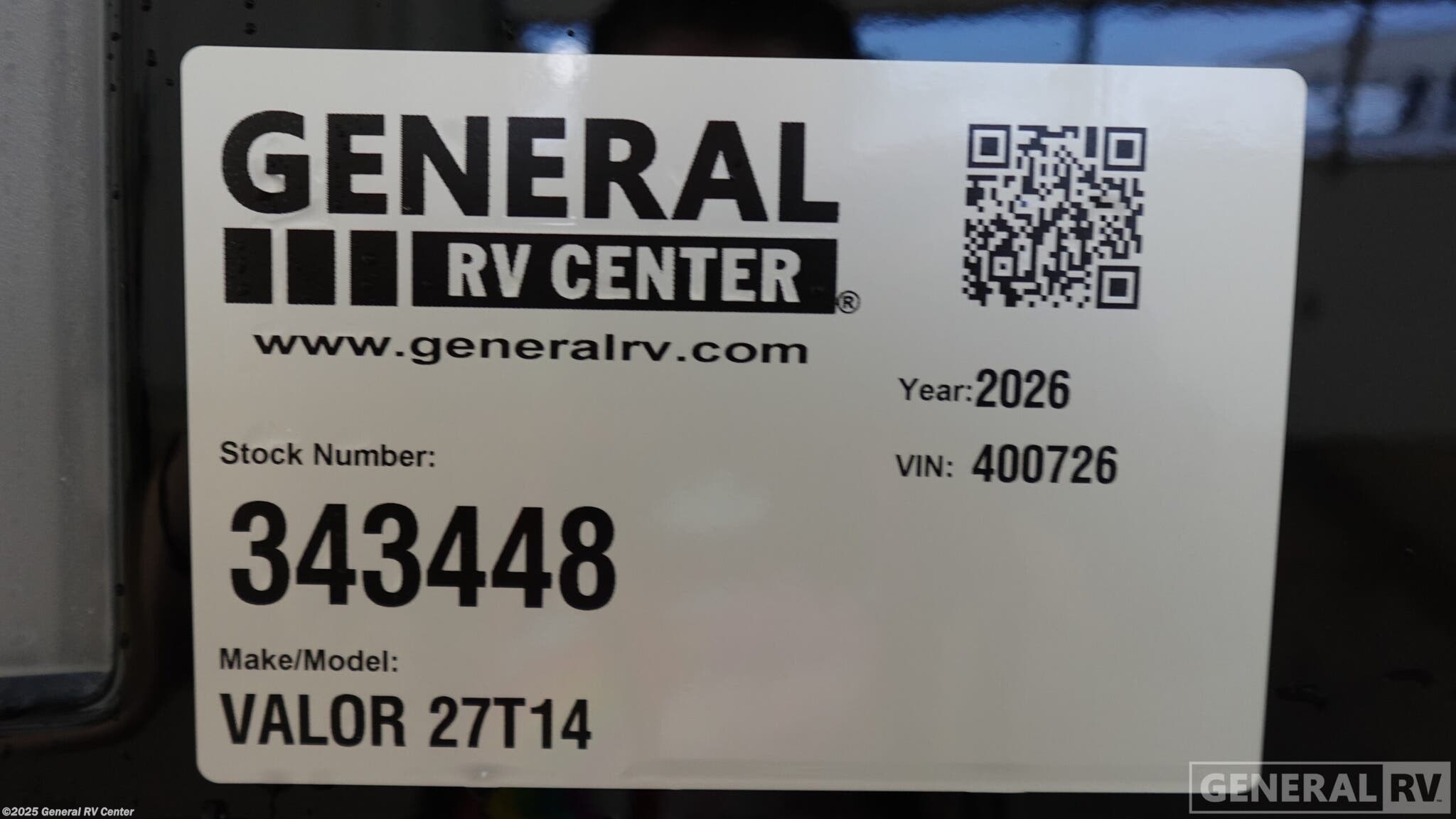 Request More Info on this 2026 Alliance RV Valor 27T14 Offered for sale by General RV Center