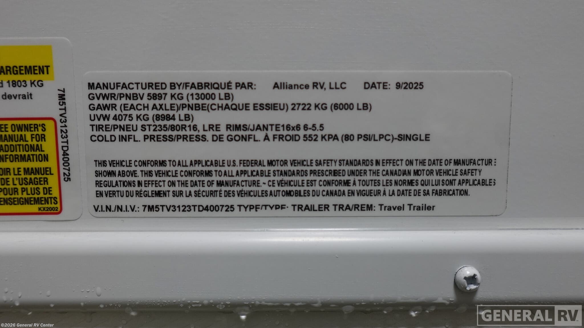 Request More Info on this 2026 Alliance RV Valor 27T14 Offered for sale by General RV Center