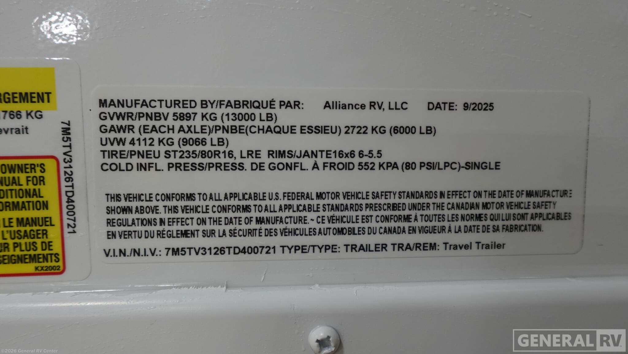 Request More Info on this 2026 Alliance RV Valor 27T14 Offered for sale by General RV Center