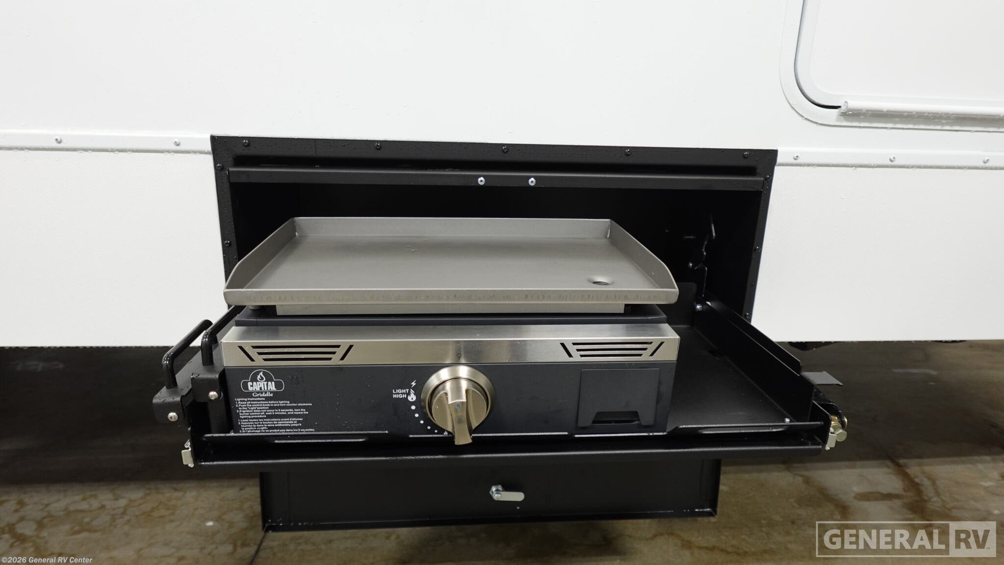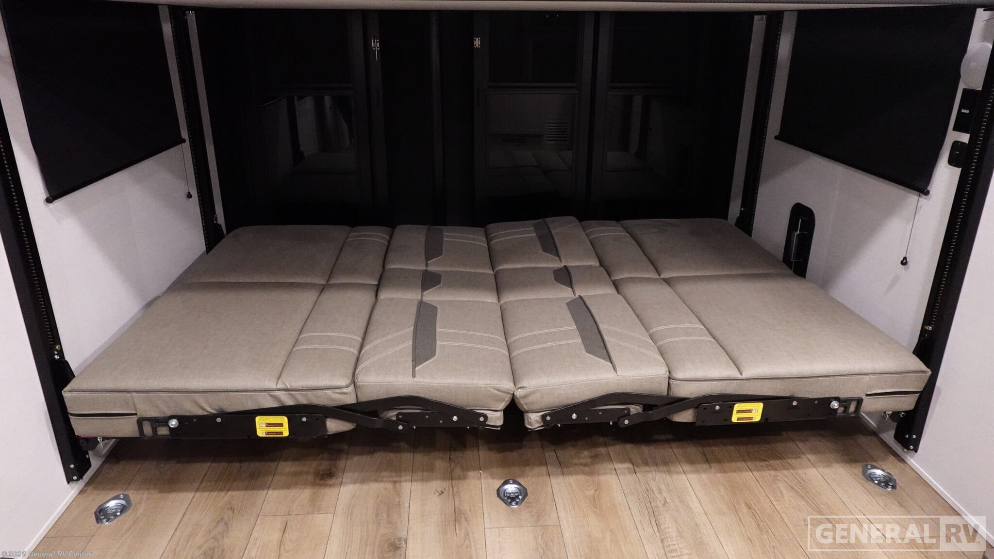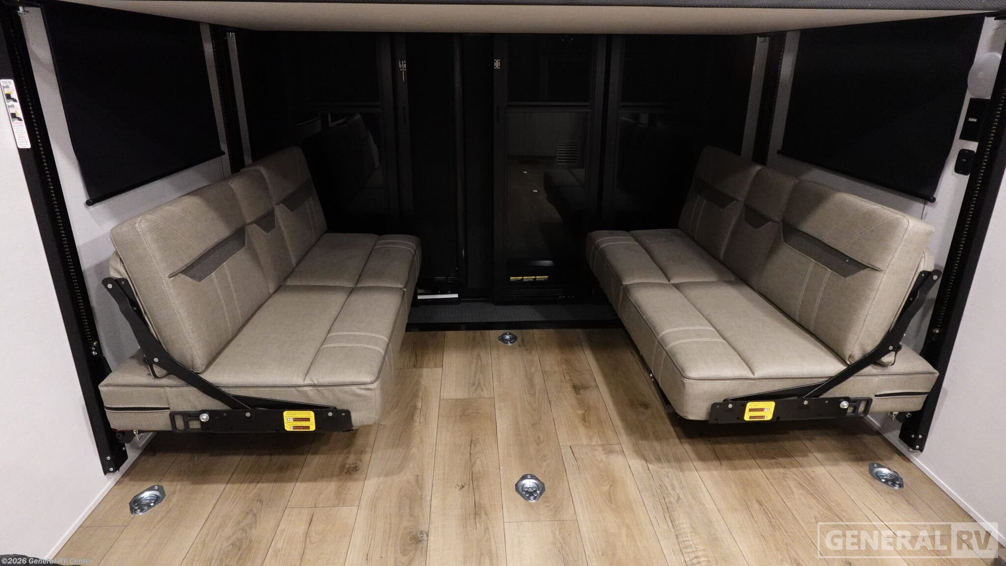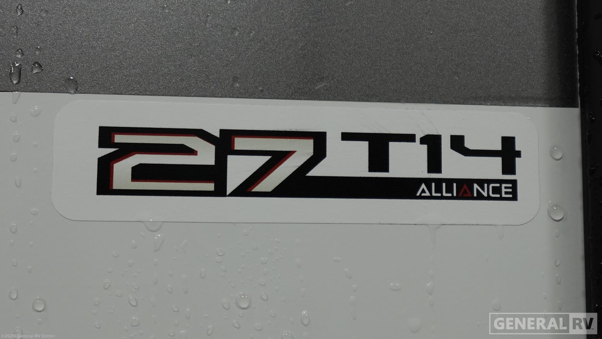 Alliance RV Valor All-Access toy hauler 27T14 highlights: -Happijac Sofas -Private Bedroom -10 Cu. Ft. Refrigerator -Dual Lounge Chairs -Drop-Down Queen Bed -Pull out Griddle Step into the world of adventure with the Alliance Valor, a striking blend of style and functionality. The exterior boasts a sleek white finish accented by bold graphics, making a statement wherever you roam. With the 14' garage length and 74 inch interior width, you can bring all your favorite off-road toys and gear with you. Inside the spacious living area, the Valor blends practicality and comfort. Whether you're cooking a gourmet meal or unwinding after a day of exploration, the Valor offers a perfect mix of comfort and luxury. The HappiJac roll-over sofas and drop-down queen bed offer a comfortable place to socialize together at night, as well as a provide sleeping space at night too! With its robust build and thoughtful design, this RV is ready to take on any journey, providing a home away from home that's as stylish as it is functional. For more details, visit your nearest General RV dealership.