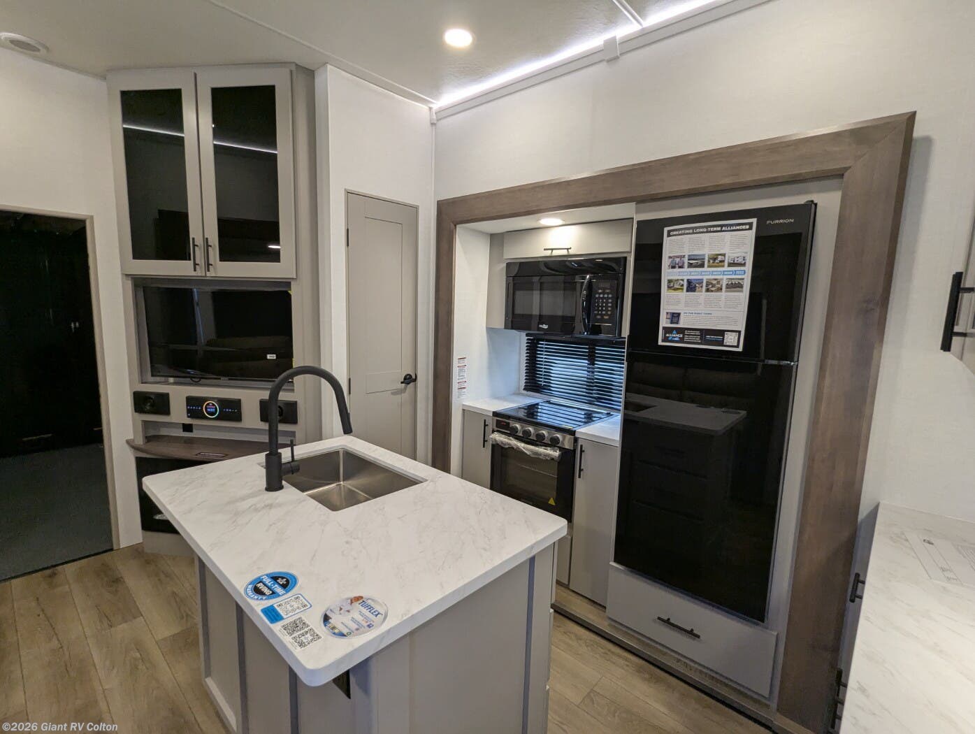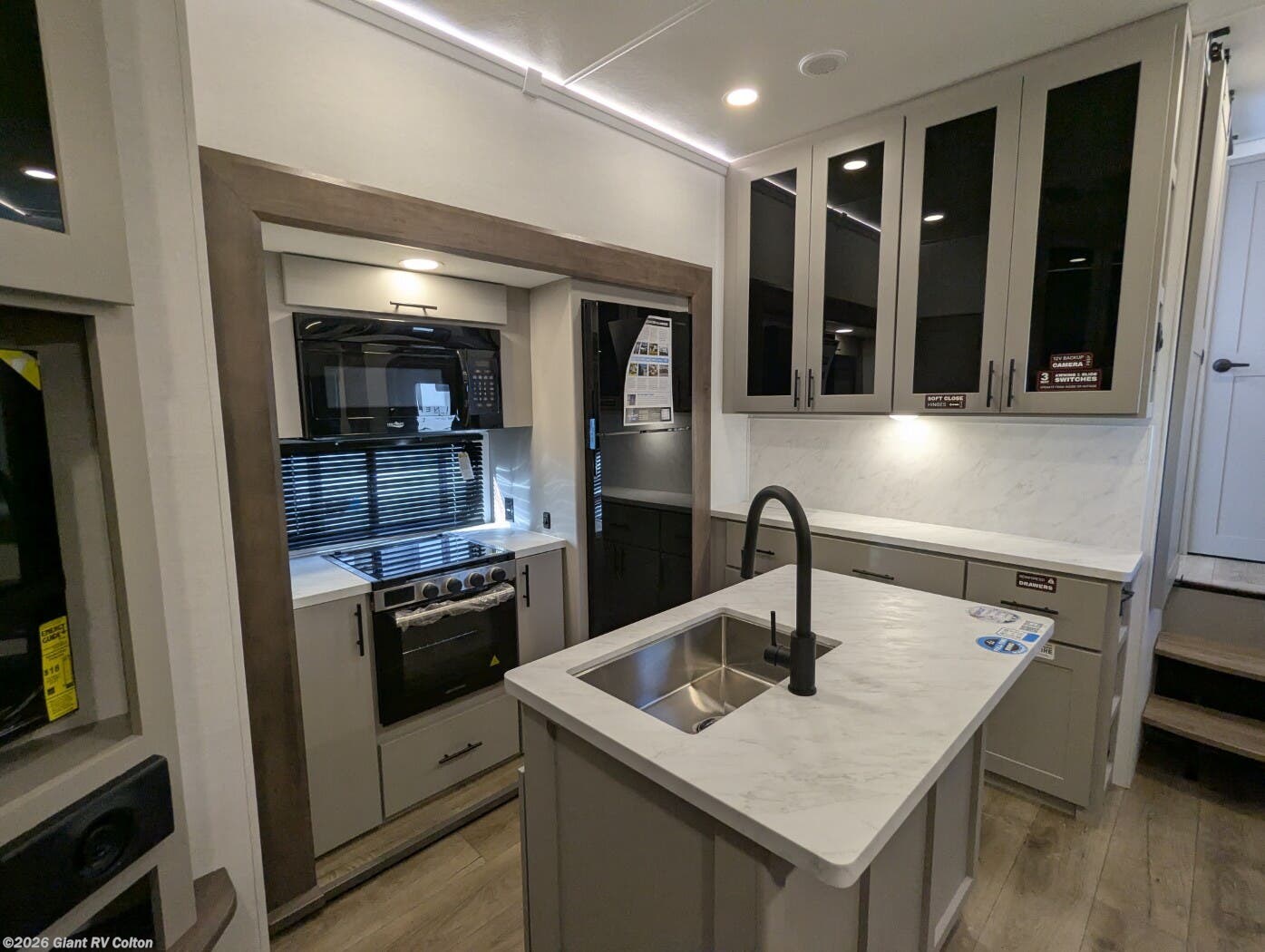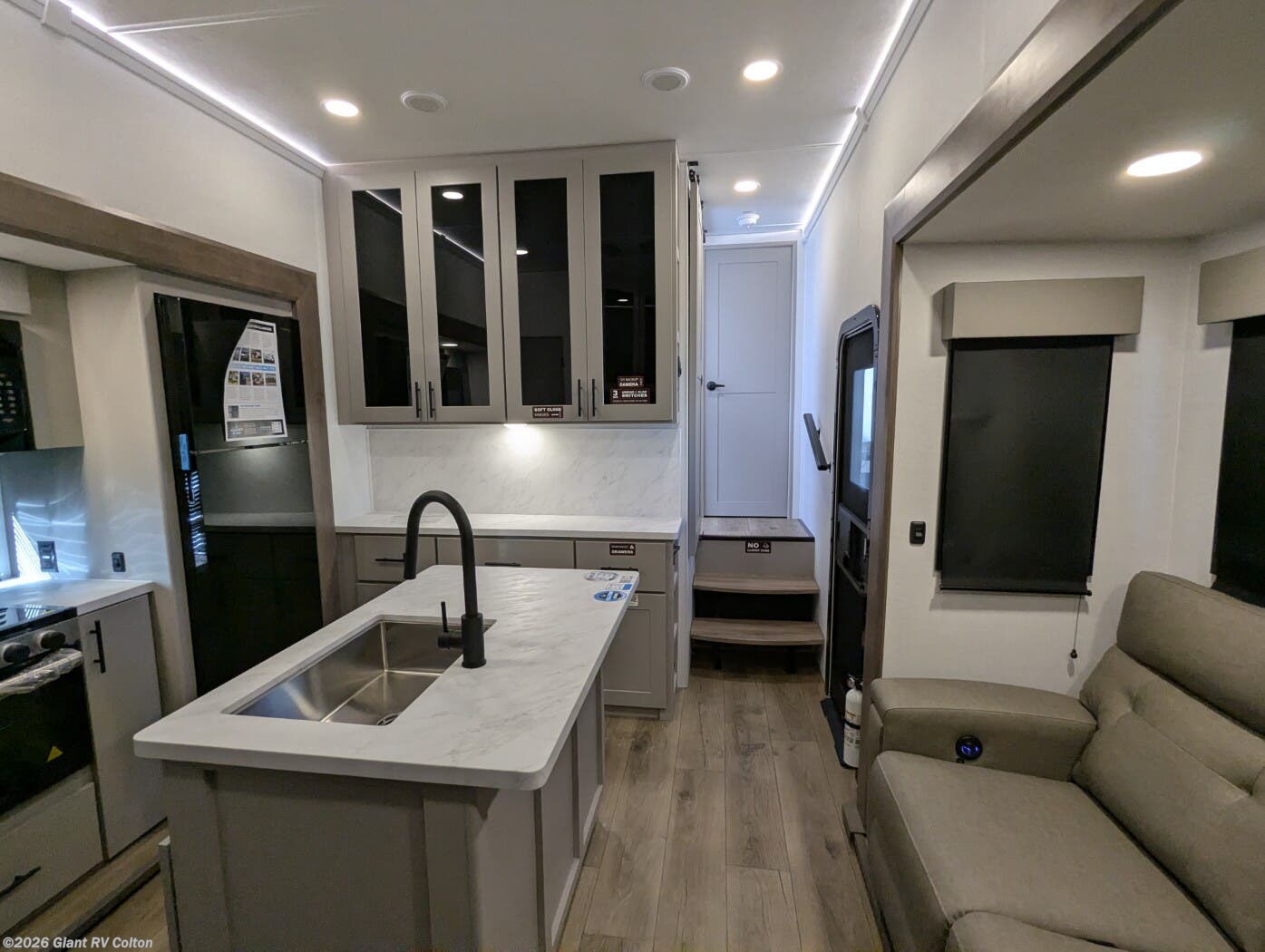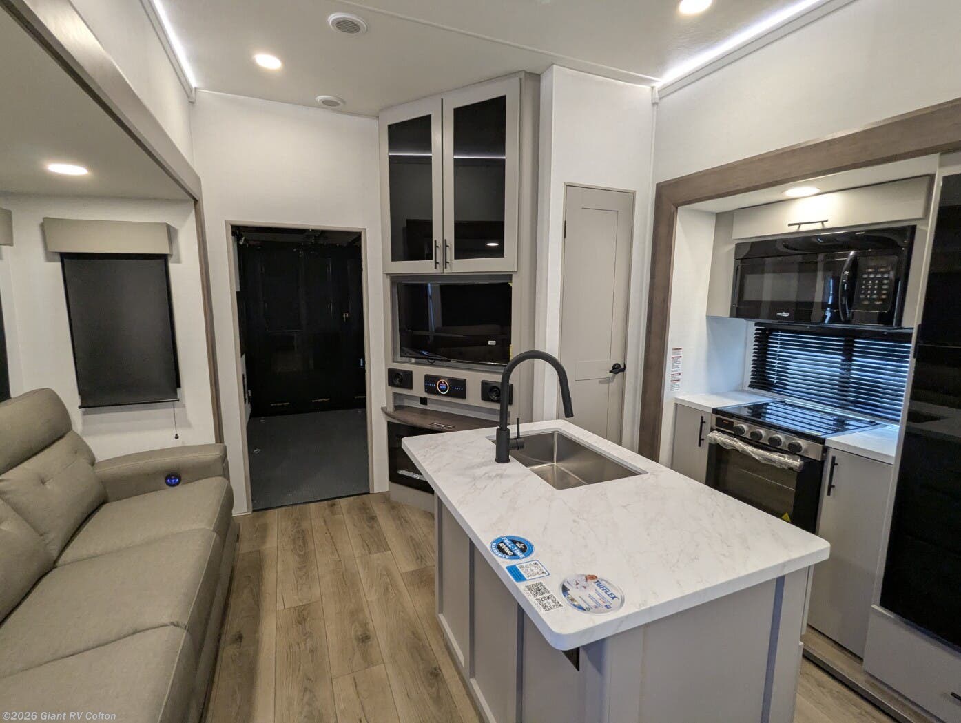Embark on your journey with the 2026 Alliance RV Valor 32A10, a rugged toy hauler fifth wheel perfect for families or adventure seekers with gear seeking adventure. Built on a 101" wide-body Benchmark chassis, this new RV features a 10' garage with drop-down queen bed, king bed, and kitchen island for versatile camping. Available at Giant RV in California, the Valor 32A10 blends off-grid capability and comfort for your travel getaway!