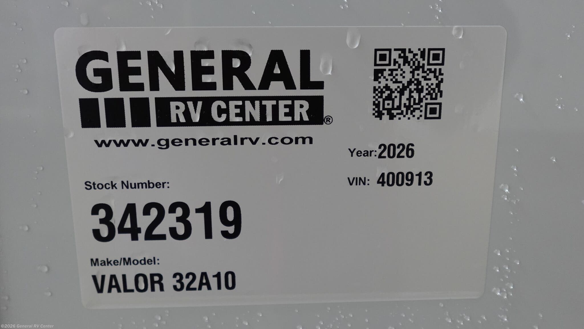 Request More Info on this 2026 Alliance RV Valor 32A10 Offered for sale by General RV Center
