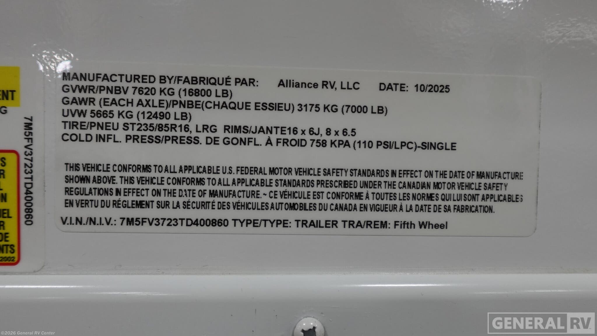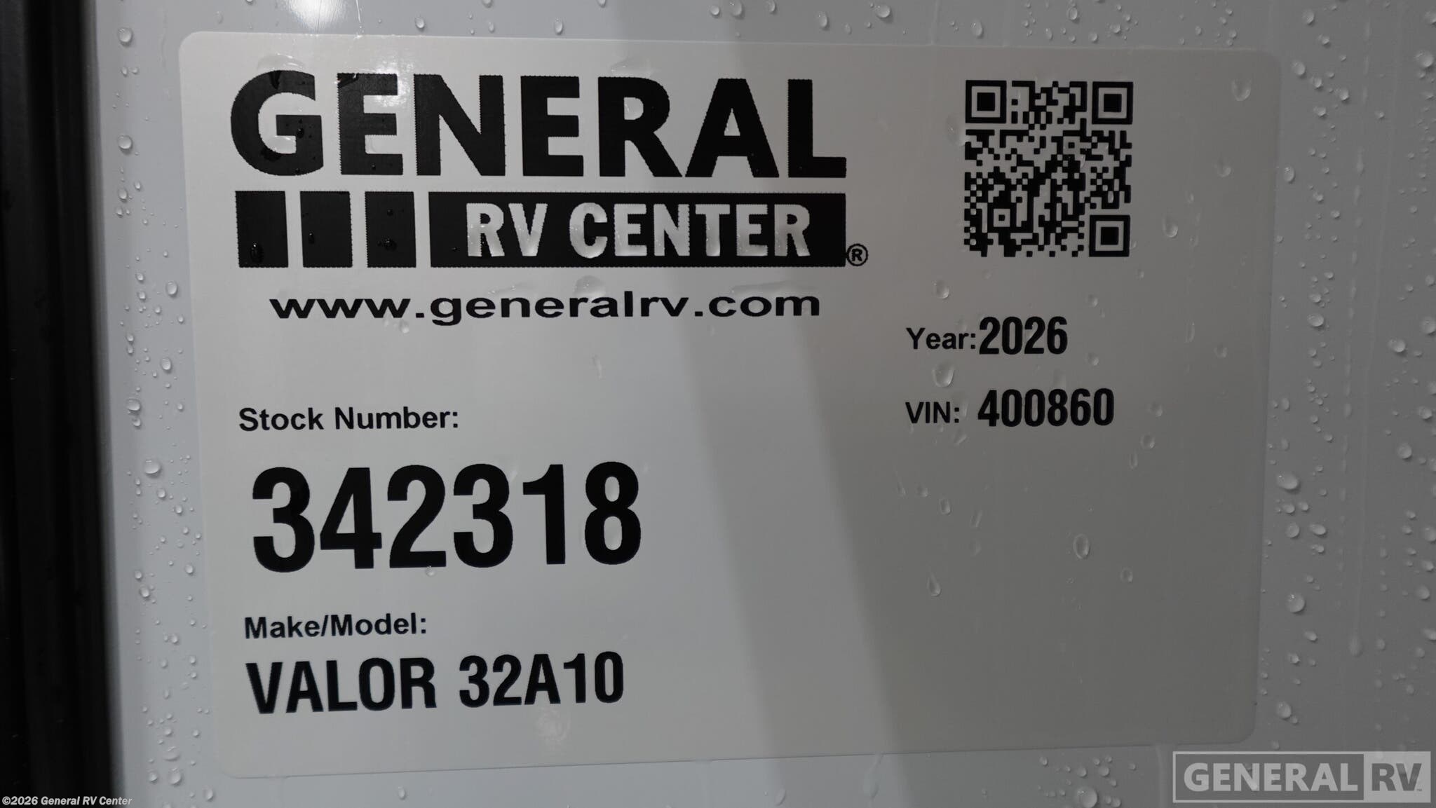 Request More Info on this 2026 Alliance RV Valor 32A10 Offered for sale by General RV Center