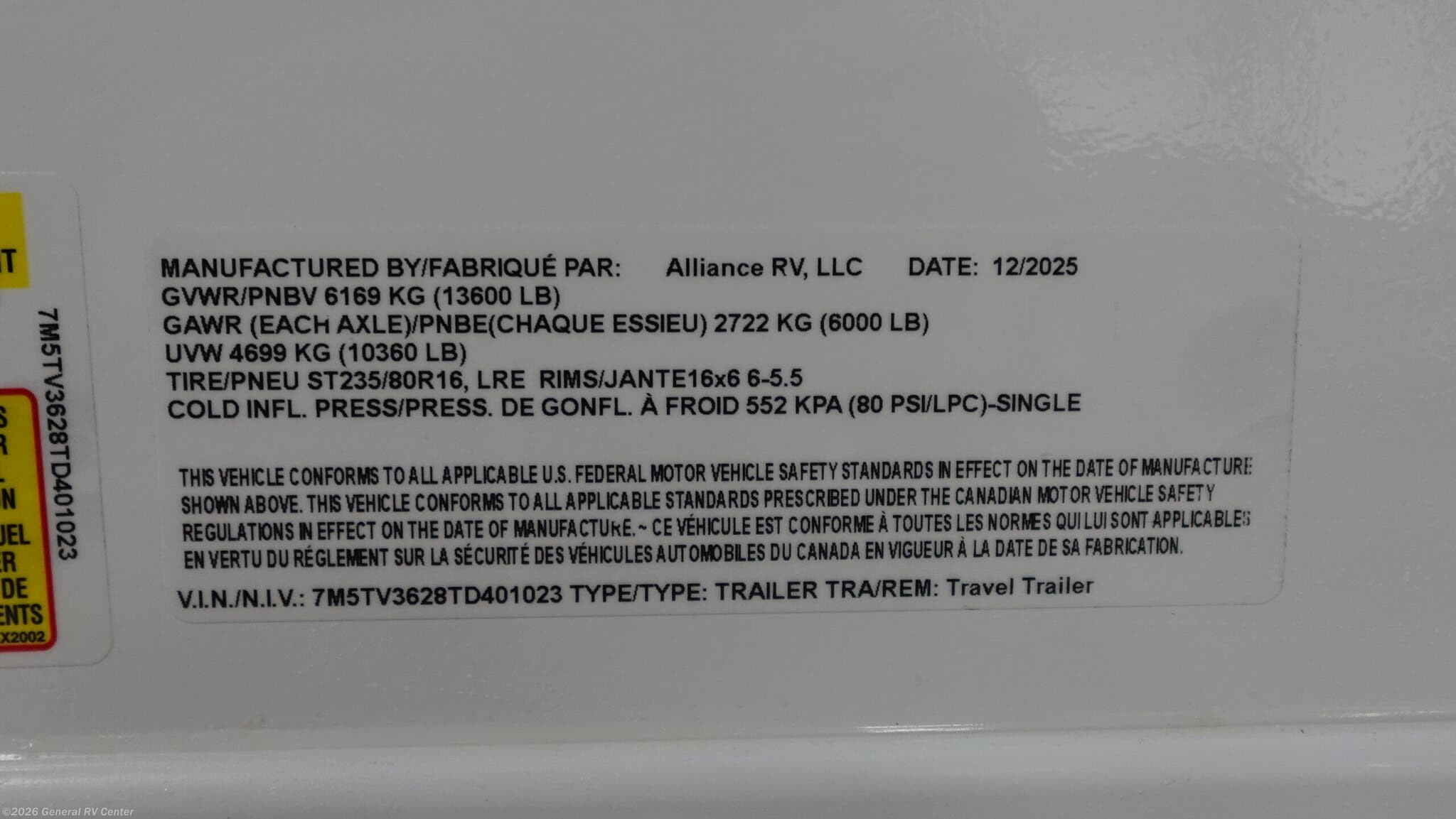 2026 Alliance RV Valor 32T13 Specifications