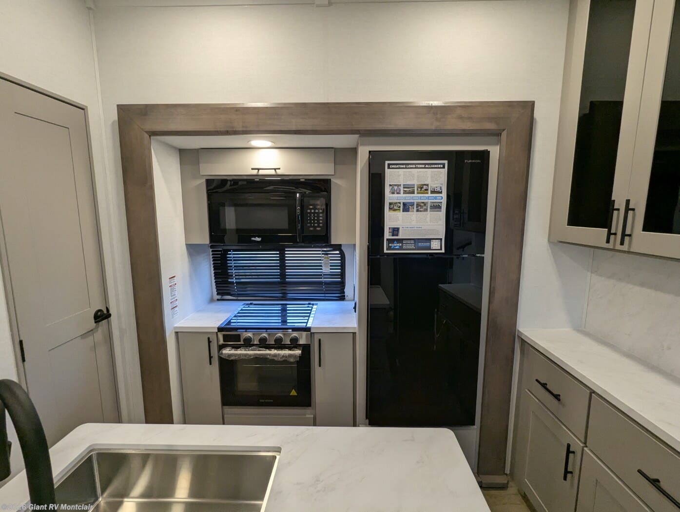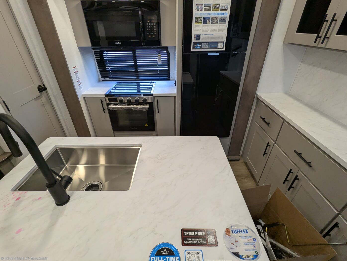 - Modern Amenities: Features air conditioning, a gourmet kitchen with pantry, residential refrigerator, three-burner cooktop, convection microwave, and HDTV in living room for easy off-grid meals.