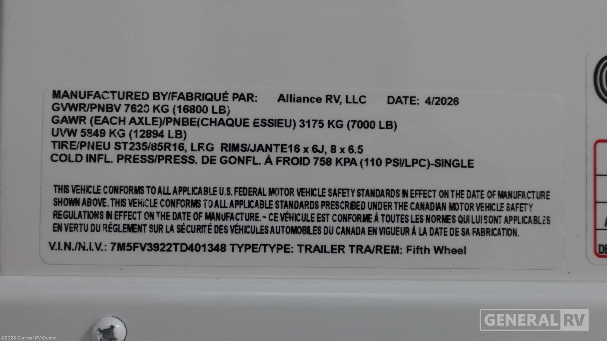 Looking to buy a 2026 Alliance RV Valor Fifth Wheel RV?