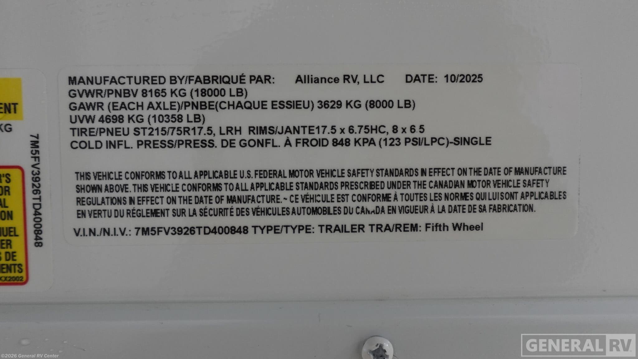 Request More Info on this 2026 Alliance RV Valor 36V11 Offered for sale by General RV Center