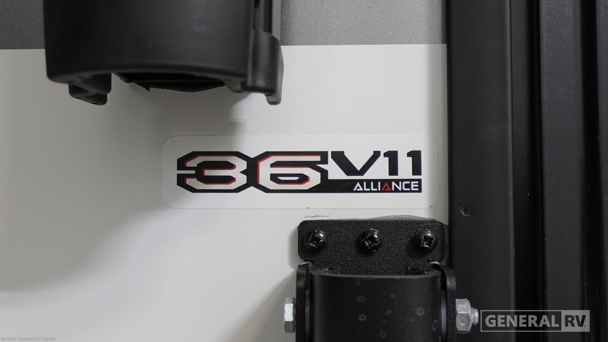 **Alliance RV Valor toy hauler 36V11 highlights:** * Two Hutches * Fireplace * Loft * Front Private Bedroom * Dual Entry Doors The whole family will have a fun time camping in this toy hauler! You can easily load up your toys into the 11' garage area with the 8' weather resistant ramp door and keep them filled with the dual 30 gallon fuel tanks. Once you unload your toys from the garage area, you can set up the opposing HappiJac sofas with a queen mattress above them, the loft that opens to the living room, and the half bathroom. The kitchen has everything you need to prepare your best meals including two hutches, three pantries, and a kitchen island with two bar stools to enjoy your morning coffee and eggs. The dual entry bathroom has a 48" x 30" shower and leads directly into the front private bedroom. Inside the bedroom is a king bed slide for more floor space, a flip top dresser, and a front wardrobe with washer and dryer prep! You can bring your toys with you wherever you go with any one of these Alliance RV Valor toy hauler fifth wheels! They are adventure-ready with a quality build from the walk on roof with seamless PVC roof covering to the commercial grade vinyl flooring and MorRyde CRE3000 suspension system. The Performance Running Gear package comes with a 101" wide-body benchmark chassis platform, 7,000 lb. Dexter axles, and a space enhancing drop frame storage compartment to pack in all your riding gear. You can even go off-gridding thanks to the Off the Grid Pack that has two 400 watt solar panels, generator prep, a 40 amp charge controller, and a 100 amp hour lithium iron phosphate battery. Some of the interior comforts you will enjoy are the hardwood cabinet doors and drawers, solid surface kitchen countertops, and commercial grade vinyl flooring with no carpet to make clean up a breeze. The Valor toy haulers are also the Masters of 12 Volt with USB charging station throughout, a stainless steel refrigerator, and more 12 volt features to make camping hassle-free!