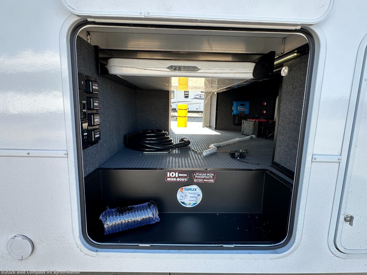 You can bring your toys with you wherever you go with any one of these Alliance RV Valor toy hauler fifth wheels! They are adventure-ready with a quality build from the walk on roof with seamless PVC roof covering to the commercial grade vinyl flooring and MorRyde CRE3000 suspension system. The Performance Running Gear package comes with a 101" wide-body benchmark chassis platform, Dexter axles, and a space enhancing drop frame storage compartment to pack in all your riding gear. You can even go off-gridding thanks to the Off the Grid Pack that has two 400-watt solar panels, generator prep, a 60-amp charge controller, and a 100-amp hour lithium iron phosphate battery. Some of the interior comforts you will enjoy are the hardwood cabinet doors and drawers, solid surface kitchen countertops, and commercial grade vinyl flooring with no carpet to make clean up a breeze. The Valor toy haulers are also the Masters of 12 Volt with USB charging station throughout, a 12V refrigerator, and more 12-volt features to make camping hassle-free!