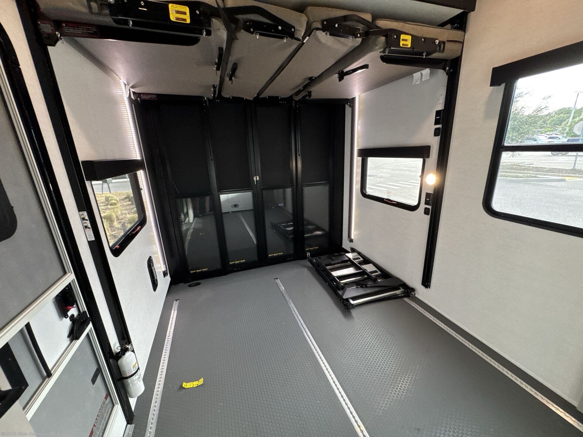 You can bring your toys with you wherever you go with any one of these Alliance RV Valor toy hauler fifth wheels! They are adventure-ready with a quality build from the walk on roof with seamless PVC roof covering to the commercial grade vinyl flooring and MorRyde CRE3000 suspension system. The Performance Running Gear package comes with a 101" wide-body benchmark chassis platform, Dexter axles, and a space enhancing drop frame storage compartment to pack in all your riding gear. You can even go off-gridding thanks to the Off the Grid Pack that has two 400-watt solar panels, generator prep, a 60-amp charge controller, and a 100-amp hour lithium iron phosphate battery. Some of the interior comforts you will enjoy are the hardwood cabinet doors and drawers, solid surface kitchen countertops, and commercial grade vinyl flooring with no carpet to make clean up a breeze. The Valor toy haulers are also the Masters of 12 Volt with USB charging station throughout, a 12V refrigerator, and more 12-volt features to make camping hassle-free!