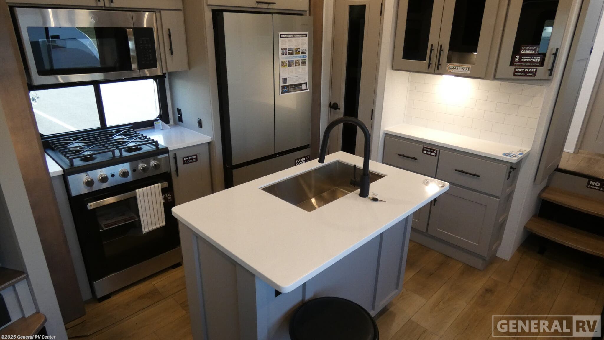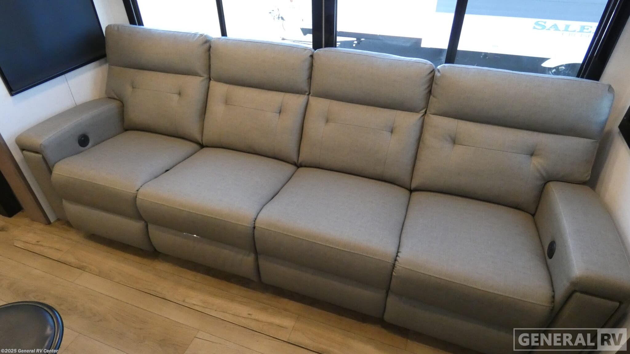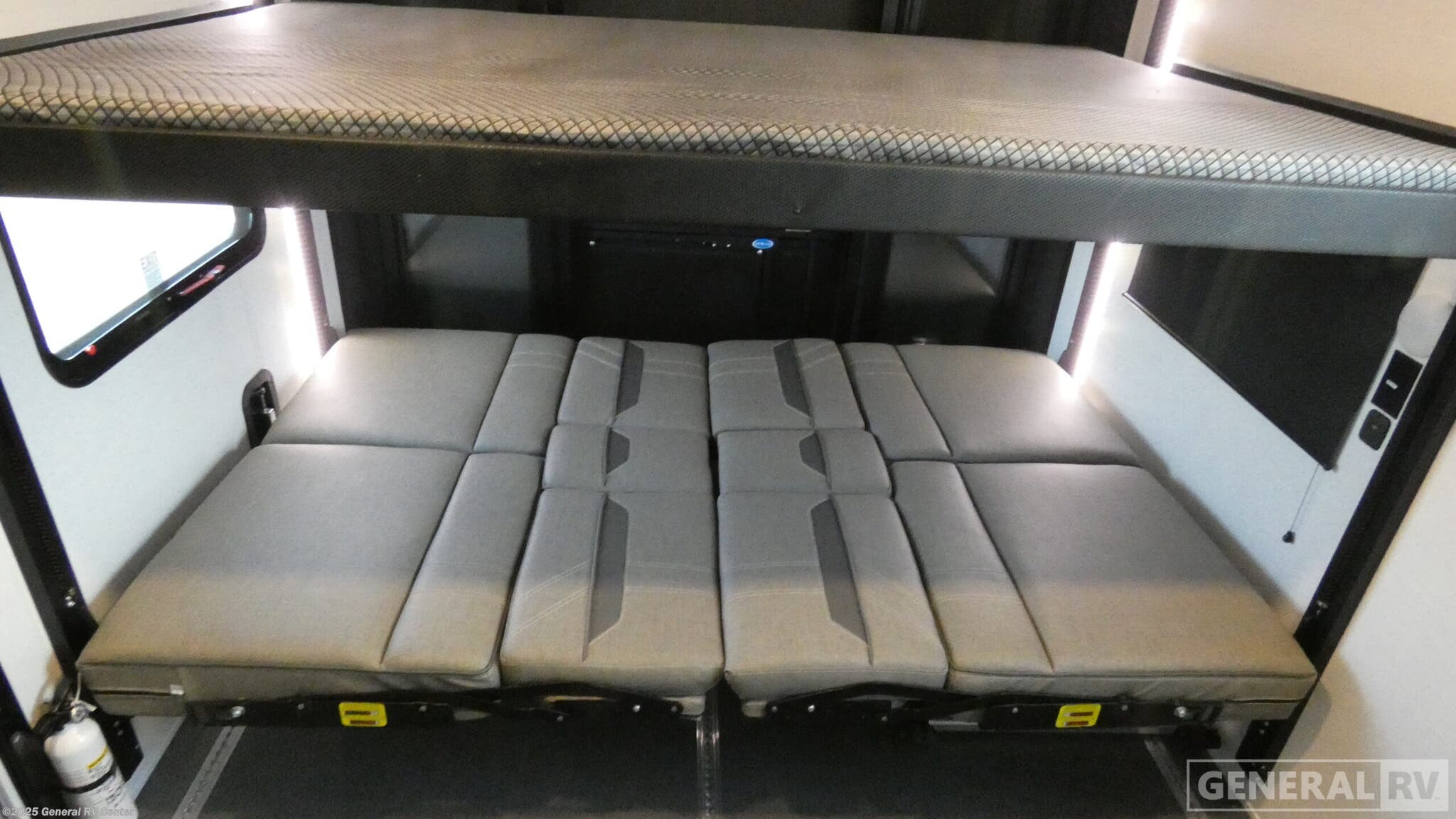 Embrace the open road with the 2025 Alliance RV Valor 36V11, a masterpiece of design and functionality that promises an unparalleled travel experience. At nearly 40 feet in length, this RV offers a spacious haven for families or groups, comfortably sleeping up to seven. The luxurious sleeping arrangements include a king bed option in the front bedroom, a cozy queen bed, and a convertible space, ensuring everyone has a restful retreat. The center kitchen is a culinary enthusiast's dream, featuring a full-size electric refrigerator and a four-burner cooktop, complemented by convection cooking capabilities. The Valor 36V11's floorplan is crafted for comfort and convenience with three slides that expand your living space, a center living area perfect for relaxation, and a center bath with a stylish plastic and glass shower. The 11-foot garage is versatile, ideal for storing your adventure gear or transforming into additional living space. With a robust fresh water capacity of 98 gallons and ample gray and black water storage, extended journeys are a breeze. Enjoy outdoor living under the powered retractable awnings, and take advantage of the RV’s automatic heater for those cooler nights. Ready to explore further? Visit your nearest General RV dealership to make this dream RV your reality.