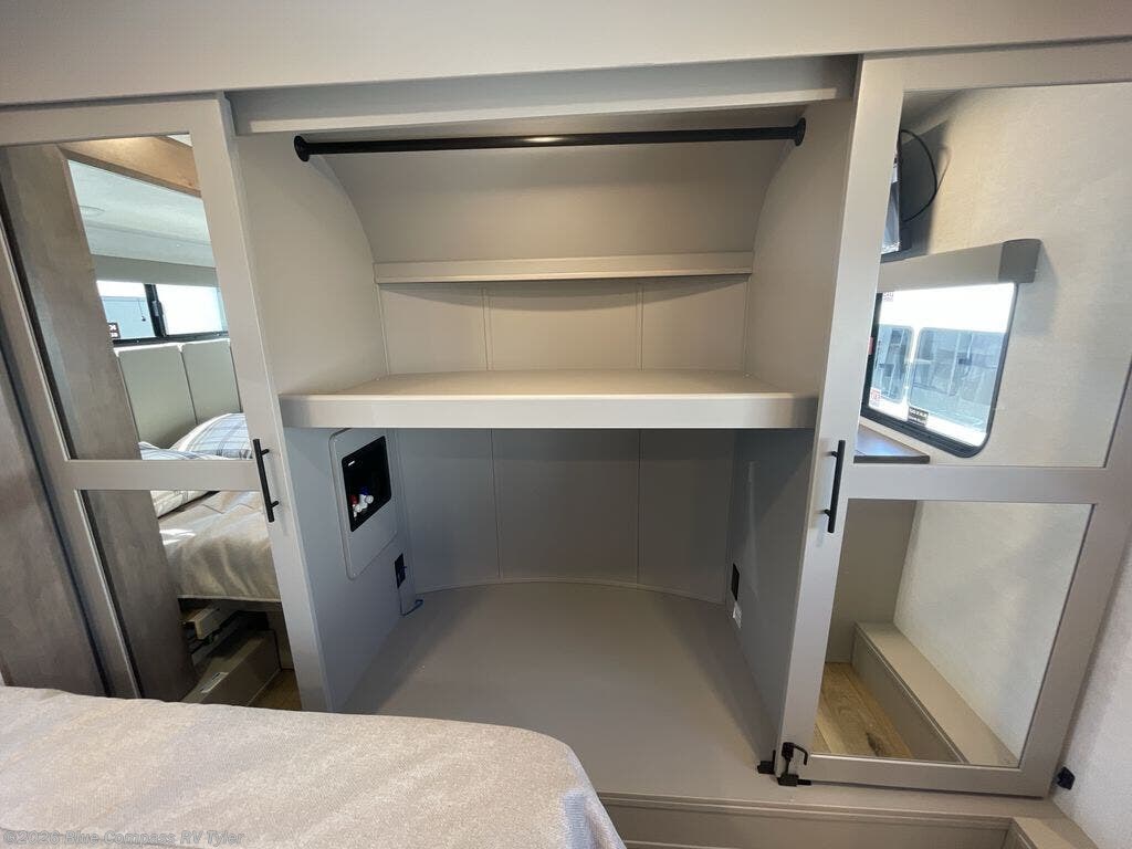 You can bring your toys with you wherever you go with any one of these Alliance RV Valor toy hauler fifth wheels! They are adventure-ready with a quality build from the walk on roof with seamless PVC roof covering to the commercial grade vinyl flooring and MorRyde CRE3000 suspension system. The Performance Running Gear package comes with a 101" wide-body benchmark chassis platform, Dexter axles, and a space enhancing drop frame storage compartment to pack in all your riding gear. You can even go off-gridding thanks to the Off the Grid Pack that has two 400-watt solar panels, generator prep, a 60-amp charge controller, and a 100-amp hour lithium iron phosphate battery. Some of the interior comforts you will enjoy are the hardwood cabinet doors and drawers, solid surface kitchen countertops, and commercial grade vinyl flooring with no carpet to make clean up a breeze. The Valor toy haulers are also the Masters of 12 Volt with USB charging station throughout, a 12V refrigerator, and more 12-volt features to make camping hassle-free!